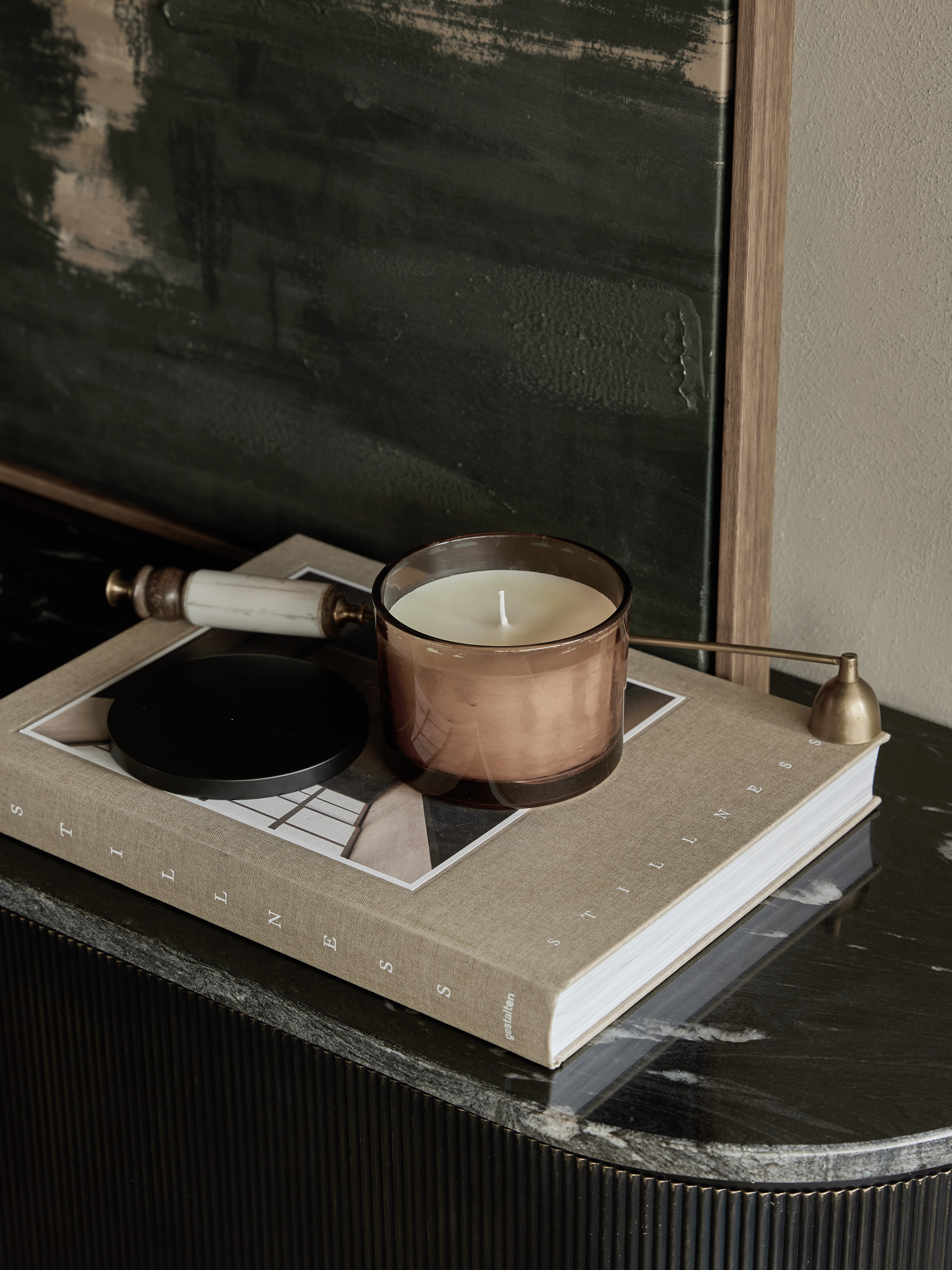 This 350g scented candle offers a layered and grounding fragrance, composed to bring warmth, balance and depth to any interior. The scent opens with the fresh, woody brightness of pine and resin, followed by a heart of warm Palo Santo and Amyris touched with gentle clove spice. At its base, deep Vetiver and dry incense woods create a meditative and enduring finish. Housed in a wide amber glass vessel, the candle lends a quiet elegance to any space. Its generous size offers up to 70 hours of burn time, allowing the rich fragrance to unfurl slowly and evenly. To enjoy its full effect, we recommend lighting for no more than 1.5 - 2 hours at a time. Glass vessel: W11.5 x D11.50 x H8cm. *Never leave a burning candle unattended.