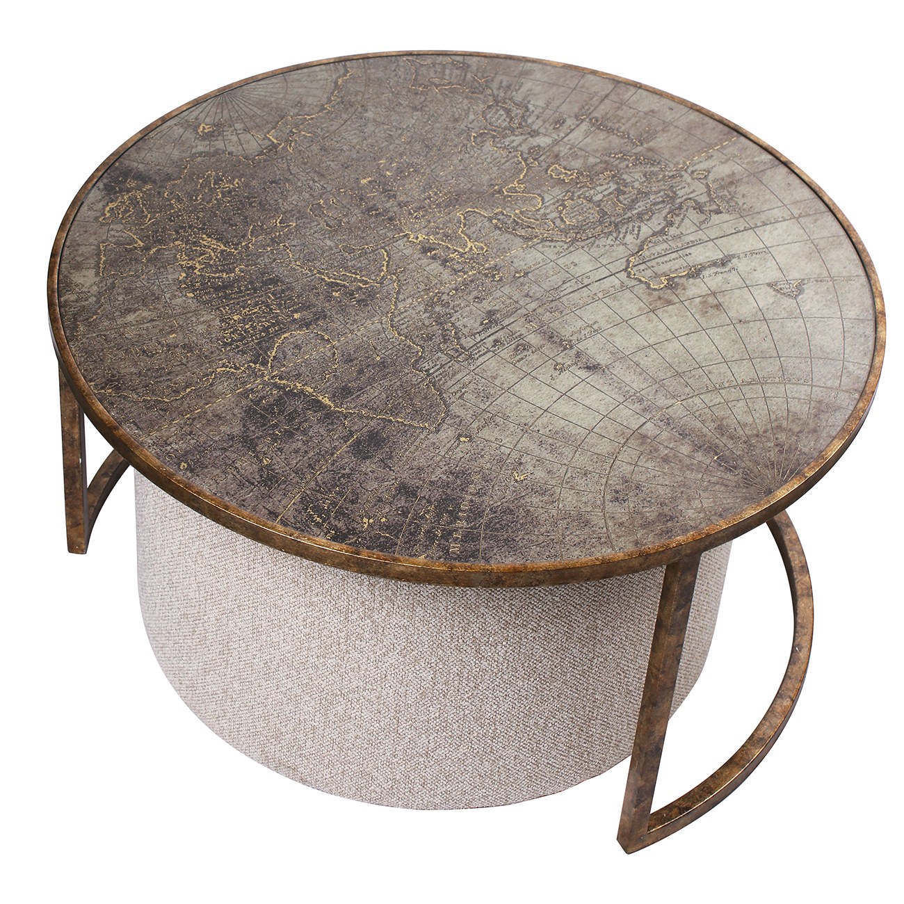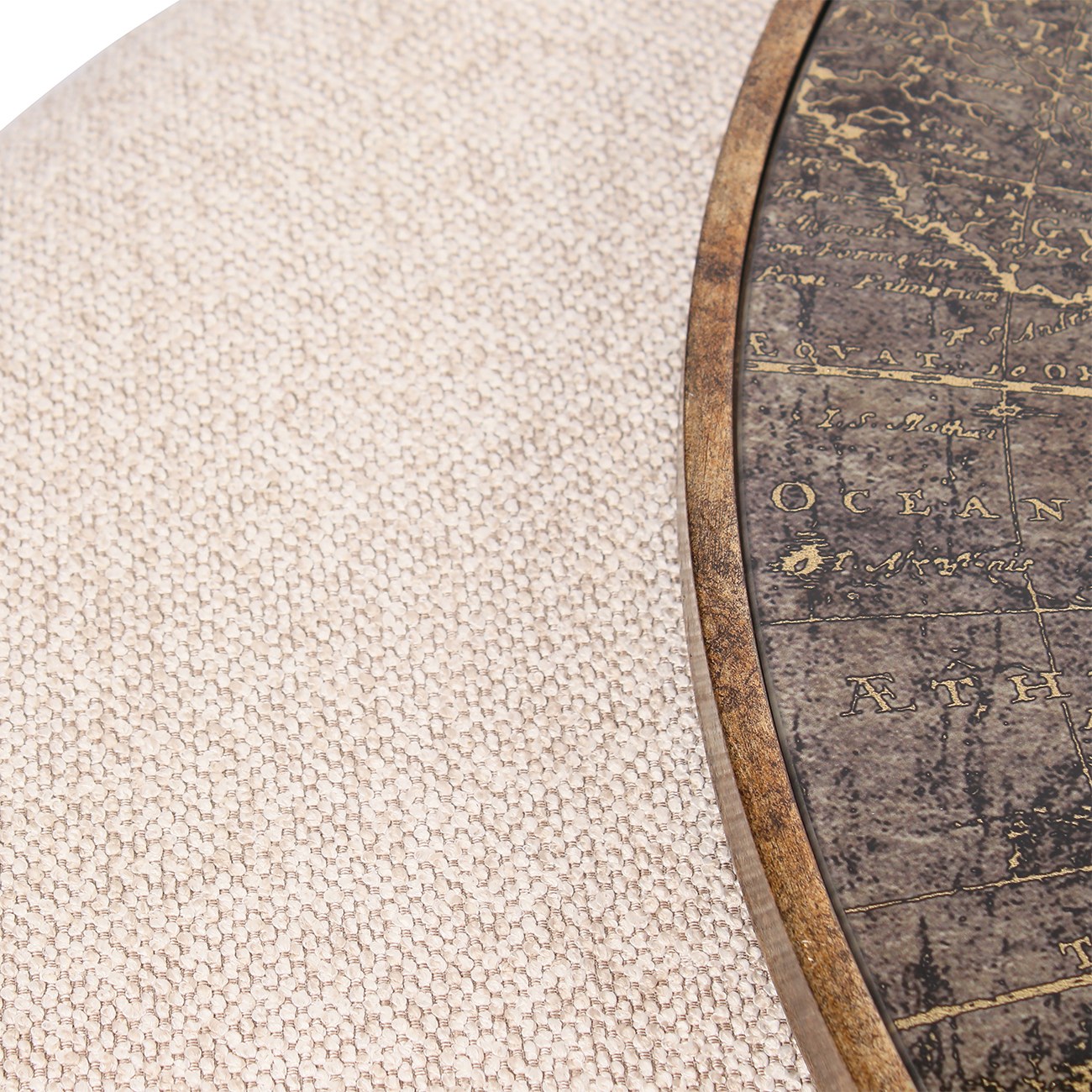 The Atlas Coffee Table combines a subtle world map artwork with warm brass tones, creating a piece that feels collected, considered and quietly storied. Its finish aligns well with the current shift toward heritage-inspired interiors where timeless motifs sit comfortably alongside contemporary styling. The cobble textured pouffe provides easy, everyday seating and tucks smoothly into the frame. Together they offer a practical solution with a refined, classic influence that suits both urban and traditional spaces. Coffee Table: W80 x D80 x H40cm. Pouffe: W60.5 x D60.5 x H38cm