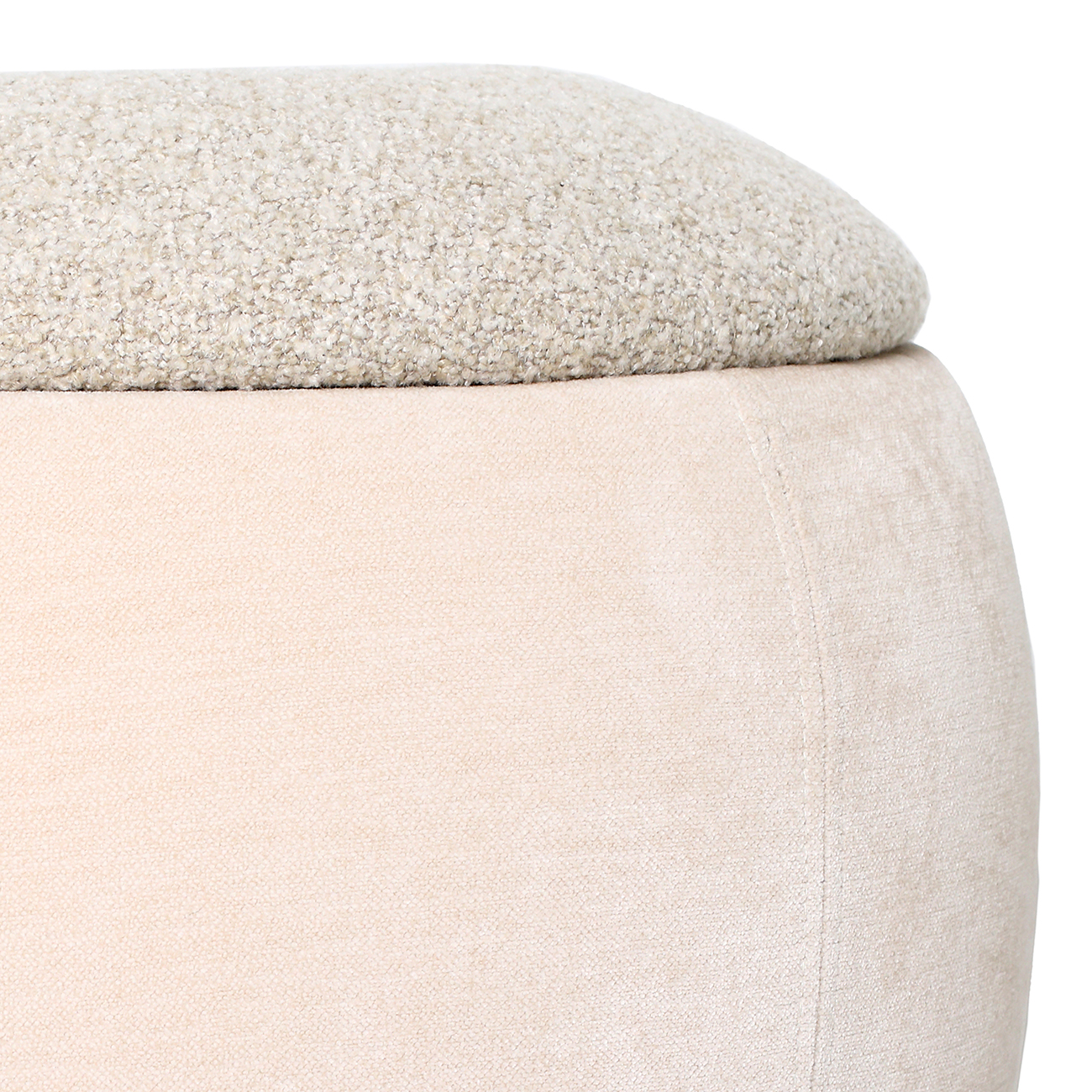 Compact and tactile, the Clemance Storage Stool offers discreet storage and tonal softness in one refined form. Wrapped in mushroom beige velvet with a natural-toned boucle top, the rounded profile lifts to reveal hidden storage inside. Perfect as a footstool, accent seat or bedside companion. Style alongside the Clemance Storage Bench for a cohesive and practical pairing. Also available in a rich terracotta colourway. W47 x D47 x H41cm