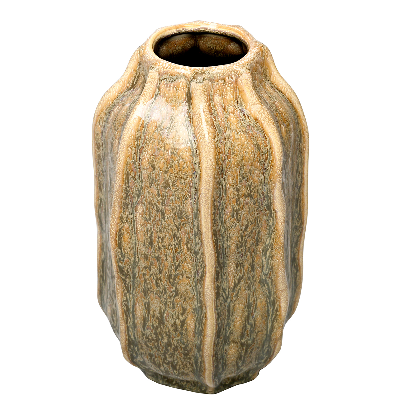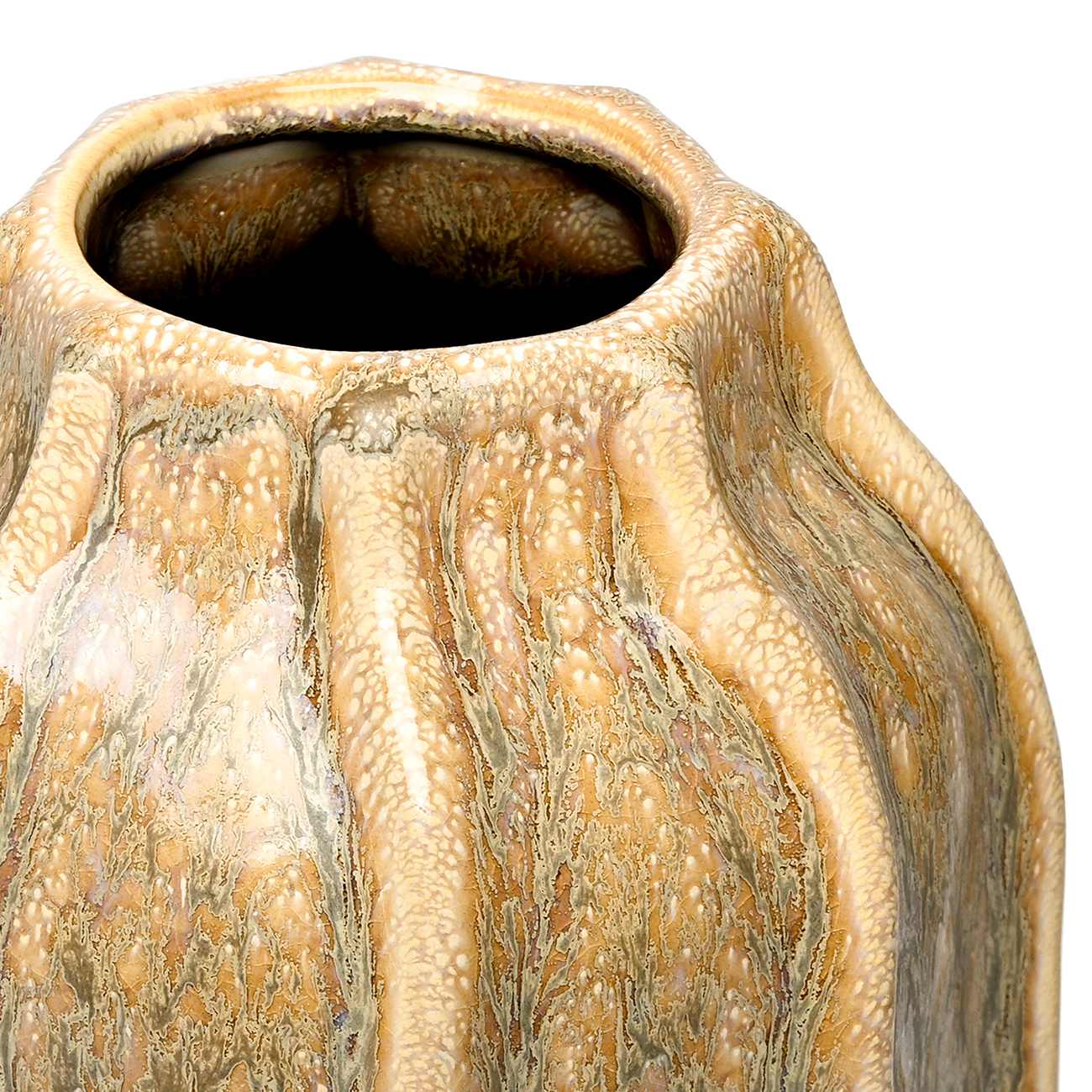 A sculptural accent with artisan appeal, the Colston Reactive Glaze Vase Medium features a ruffled edge, vertical ridge detailing and a glaze that shifts softly in the light. Its warm brown tones bring a balance of texture and tone to any setting. Well-proportioned and water-safe, it’s suited for fresh floral arrangements or can stand alone as a focal piece. Style with the Small and Large Colston vases to create a tonal ceramic display. Dimensions: W20.7 x D20.7 x H23 cm