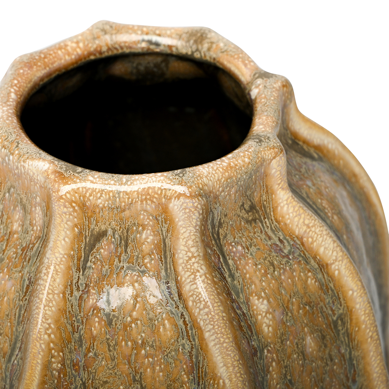 Tall and elegant with a sculpted finish, the Colston Reactive Glaze Vase Large brings presence and flow to interior spaces. Crafted in stoneware with vertical ridges and a warm reactive glaze, its surface reveals soft movement and material depth. Well-proportioned and water-safe, it lends itself to tall stems or dramatic single-branch displays. Pair with the coordinating Small and Medium sizes in the Colston collection to complete the composition. Dimensions: W17.7 x D17 x H30 cm