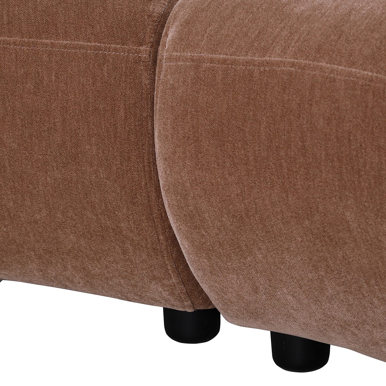 Sculptural yet grounded, the Eden Modular Sofa combines organic curves with generous comfort. Upholstered in warm cocoa velvet with a subtle low-pile texture, it brings softness and sophistication to statement living spaces. The two curved modules nest seamlessly together to form a fluid, conversational shape, encouraging relaxed lounging or hosting. Resting on discreet black feet, its silhouette floats with a sense of lightness despite its substantial presence. Designed to anchor a room, Eden works beautifully as a standalone centrepiece or styled with tactile neutrals for a tonal, layered interior. Seat height 38cm. W319 x D139.5 x H67cm
