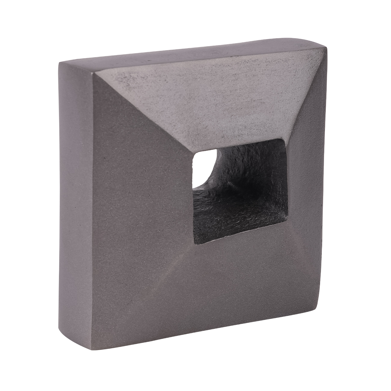 Crafted from solid cast aluminium with a deep, textured finish, these bookends combine sculptural weight with considered detailing. The geometric silhouette is softened by a hollowed centre, creating depth and contrast from every angle. Finished in an antique lead tone, the bookend pair introduce a trendy architectural focal point to any interior space. A functional accent with design appeal and part of a growing collection of Libra bookends. Each bookend measures W6 x D15 x H15 cm.