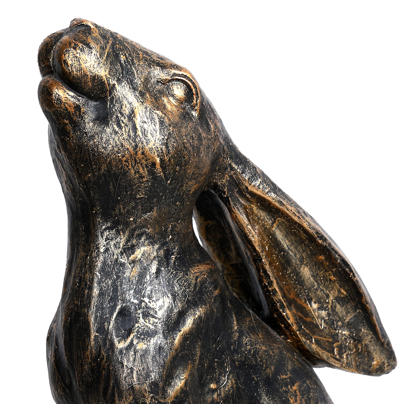 A charming tribute to nature’s quieter moments, our Harry Stargazing Hare captures a sense of stillness and wonder. Cast in polyresin with an antiqued gold finish, this exclusive piece invites tactile interest with its textured surface and hand-finished patina. Positioned in a moment of upward pause, Harry’s sculptural lines and elongated limbs evoke both poise and personality. Whether placed on a mantel, console or curated shelf, this decorative hare adds a whisper of whimsy and a nod to British woodland heritage. With a compact footprint and rich materiality, it’s a considered choice for those curating spaces with warmth, texture and narrative. Dimensions: W22 x D12.5 x H34.9 cm.