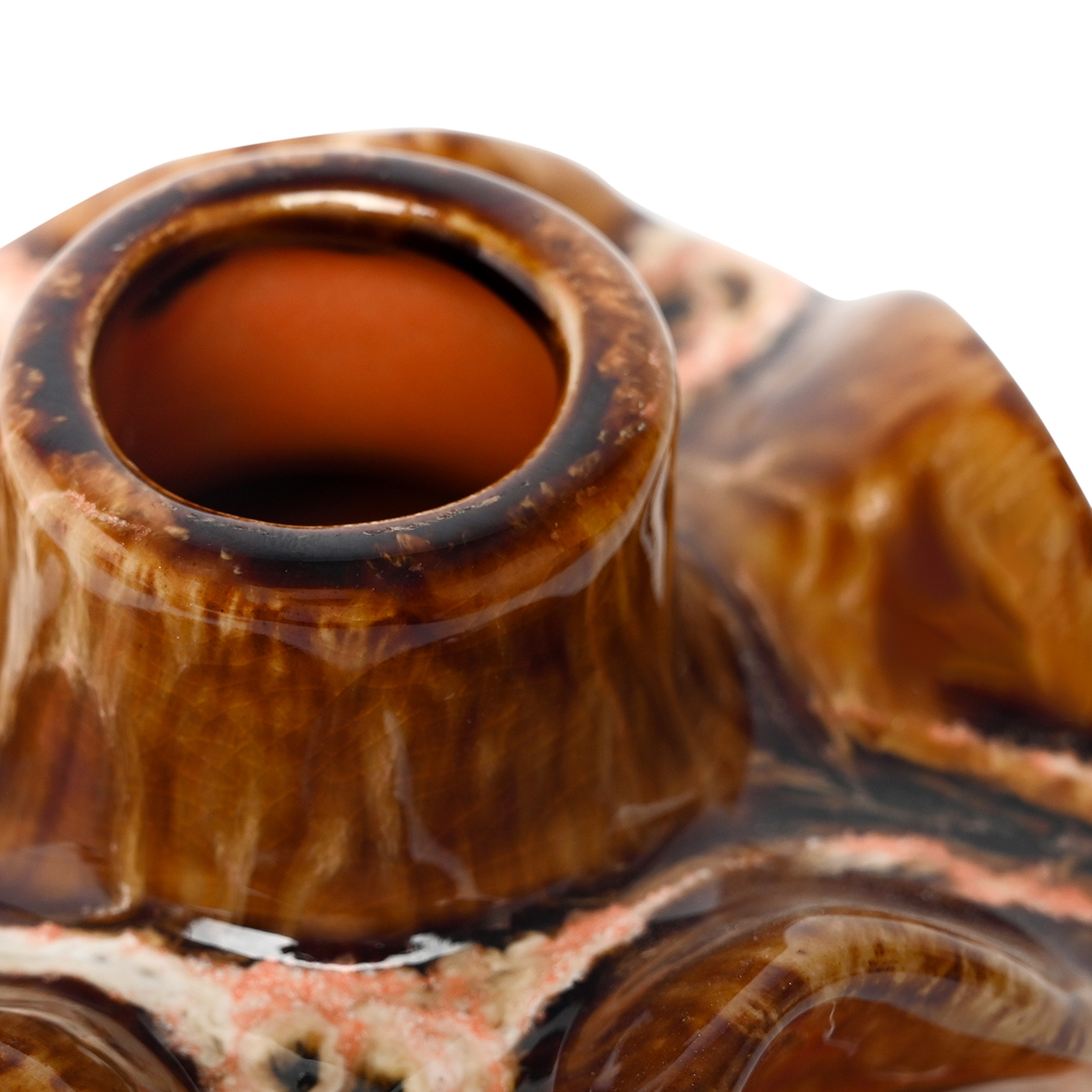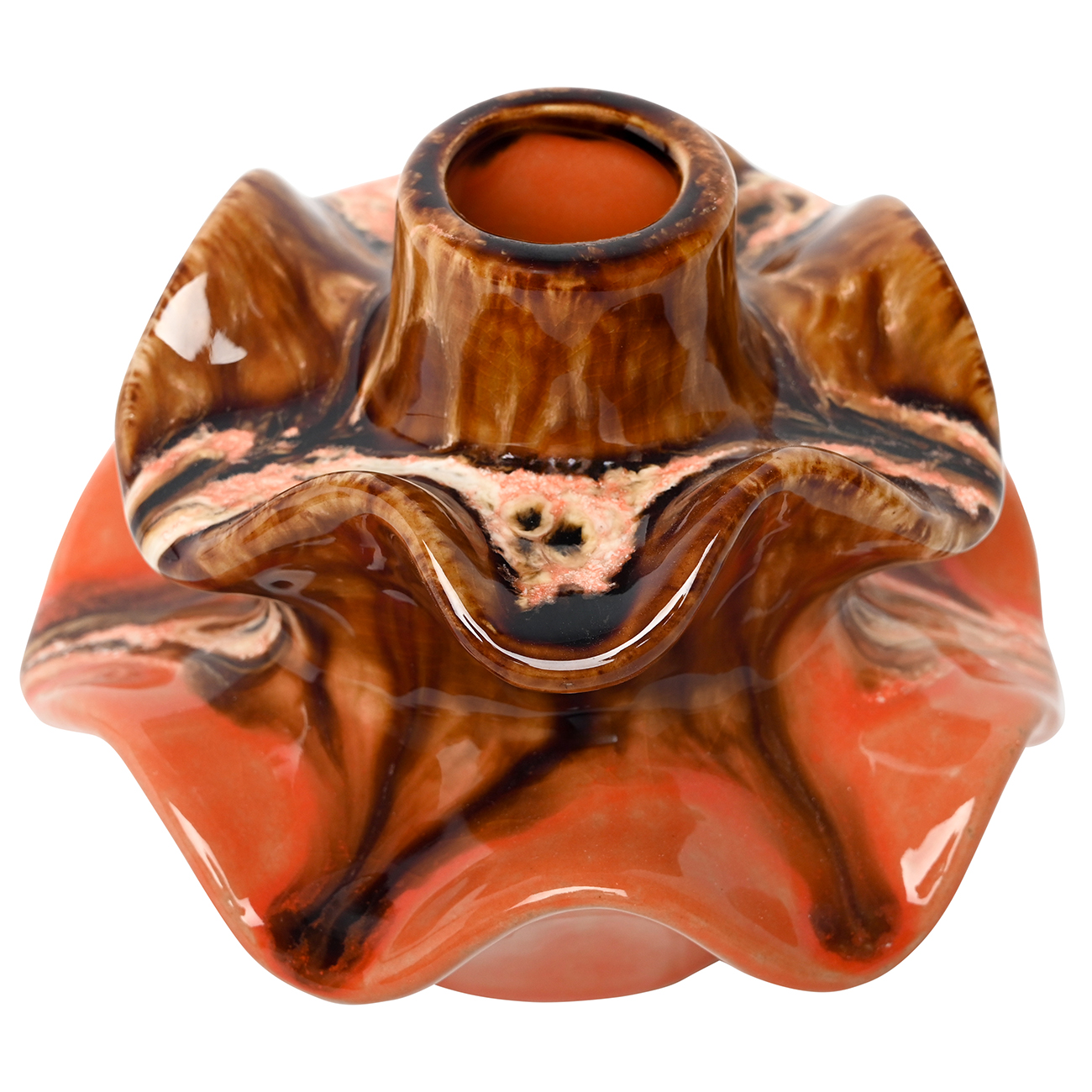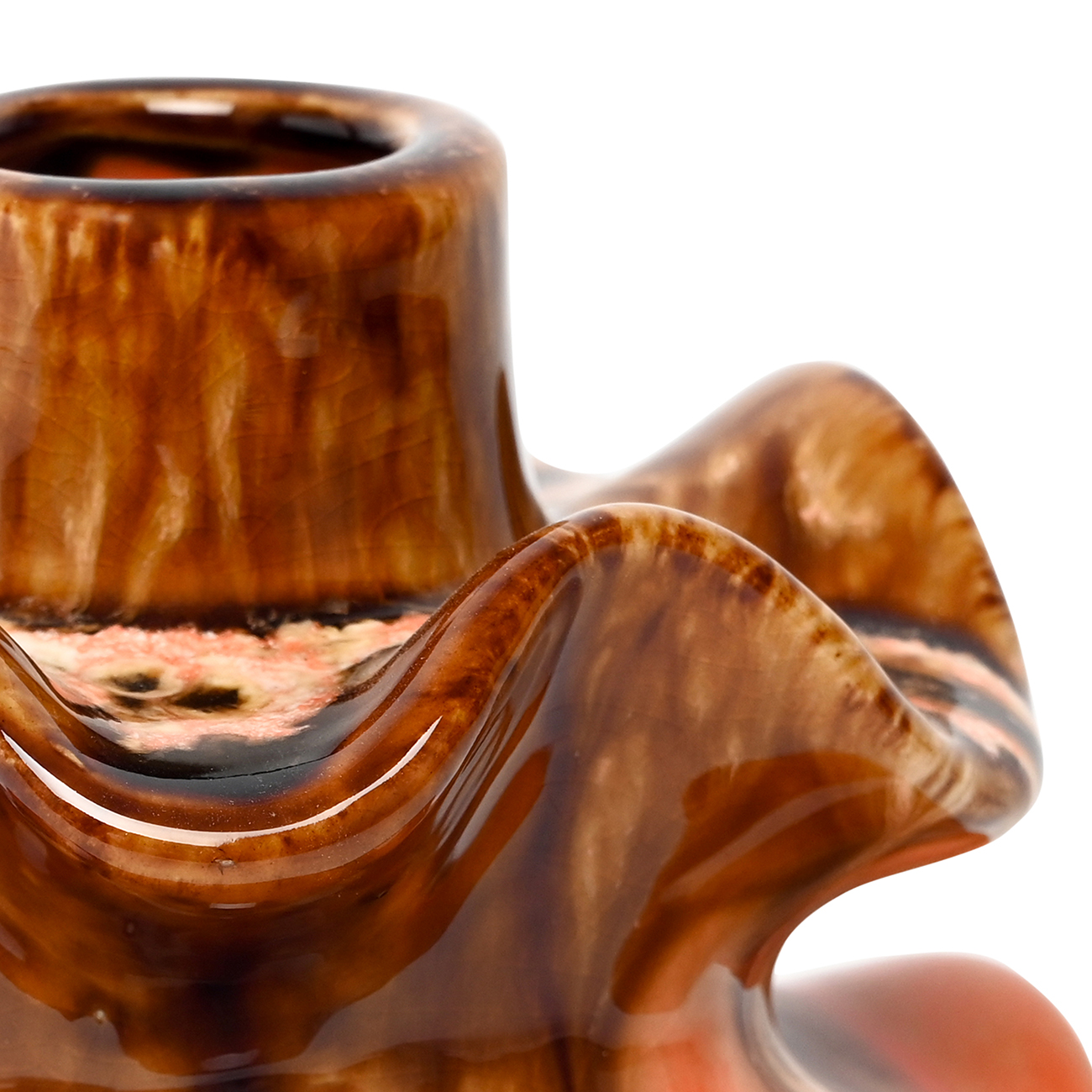 Flowing curves and earthen tones meet in this expressive small vase from our Ibiza collection. Finished with a high-shine reactive glaze in layered amber and terracotta, each piece carries its own character. Designed to hold dry or faux arrangements, it brings a warm, sculptural presence to any setting. Pair with the matching Ibiza Planters, available in Medium and Large, to bring sculptural warmth to shelves, consoles or dining tables. W12.3 x D12 x H10 cm