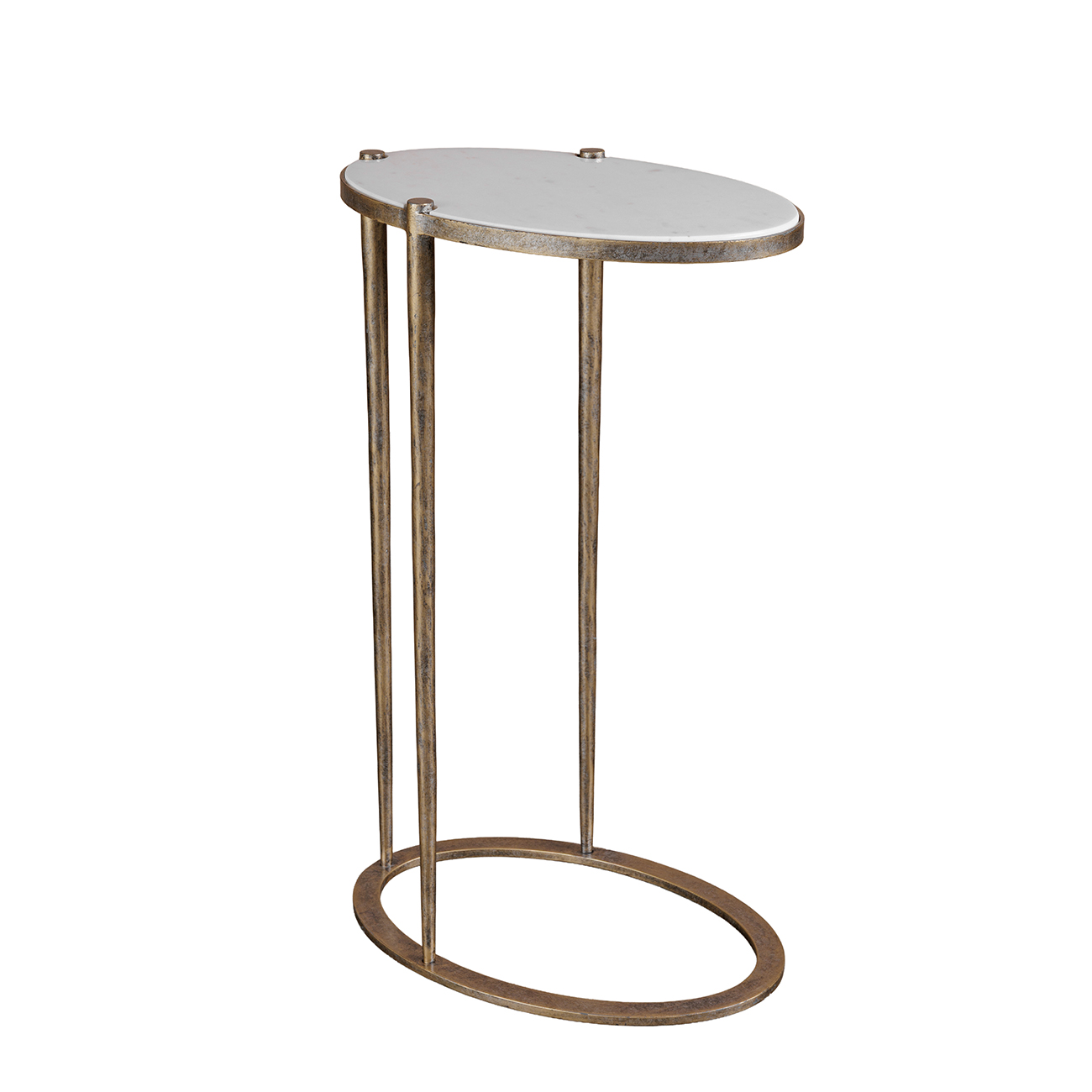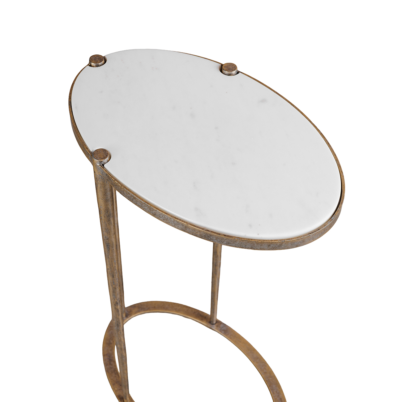Iota Oval Accent Table White Banswara Marble Aged Champagne