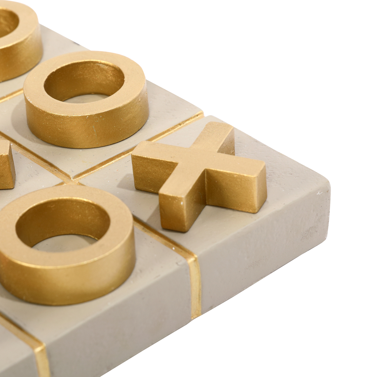 A sculptural take on classic play, this Noughts & Crosses set blends form and function with a touch of nostalgic charm. Crafted from solid cement in a soft grey and gold palette, it offers a pleasing weight and a raw, tactile surface. The clean geometry of the grid is balanced by the smooth curves of the ‘O’s and the crisp edges of the ‘X’s, creating both visual rhythm and interactive appeal. Styled on a coffee table, console or study shelf, it invites quiet moments of play while serving as a contemporary decorative accent. W21.2 x D4.5 x H21.2 cm