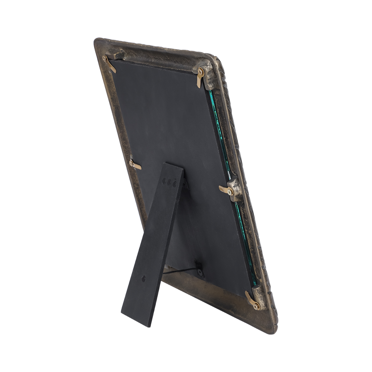 Celebrate bold texture and character with the Kavari Tiger Photo Frame in 8x10 inch. Cast in aluminium with a warm, antiqued brass finish, the sculptural frame features a bold, tactile design that echoes tiger stripes for a subtly wild accent. Designed for portrait orientation, it’s perfect for showcasing treasured portraits or travel memories on mantels, shelves or desks. A striking standalone piece or ideal paired with the matching 5x7 frame for a layered display. W26.5 x D2 x H31cm. Part of the Kavari collection, which also includes a coordinating lamp and tiger bookends.
