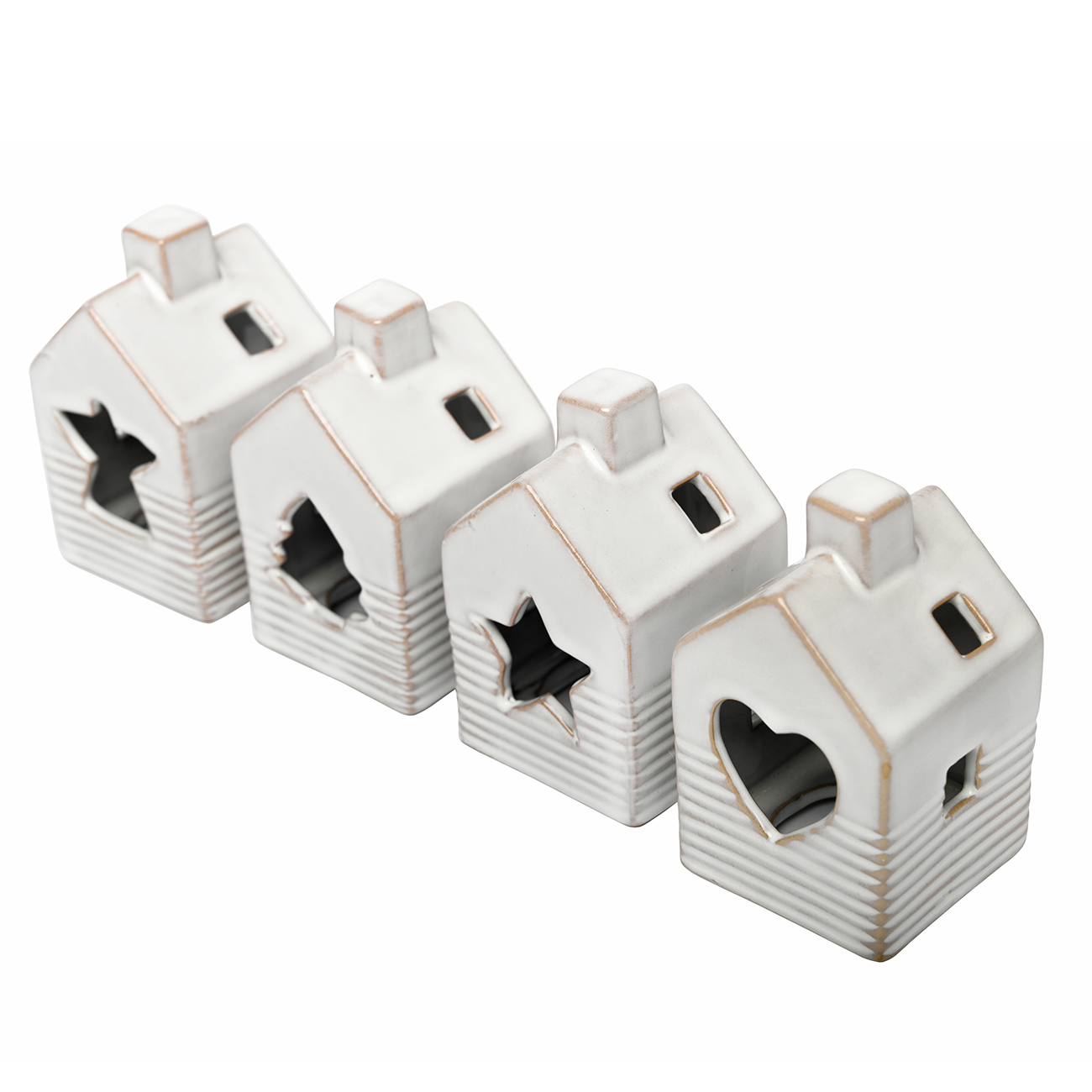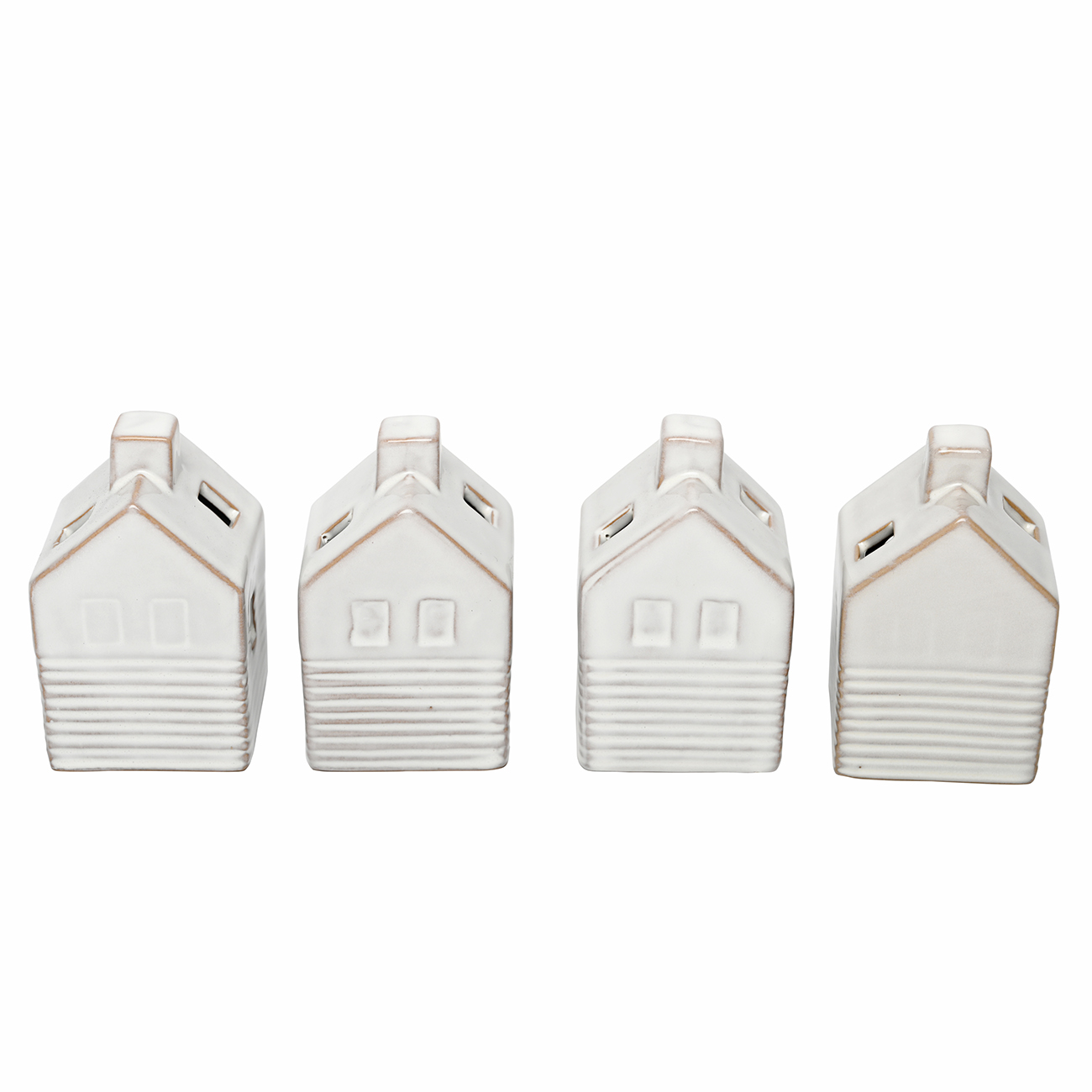 Add a charming decorative accent to your interior with this set of four Laura Ashley Ceramic Village Houses. Each house features a soft glazed finish and delicate cut-out designs including a heart, star, tree, and angel. Beautifully simple and full of character, they’re perfect for styling on shelves, sideboards or window ledges. Dimensions (each): 8.7 x 5.8 x 10 cm