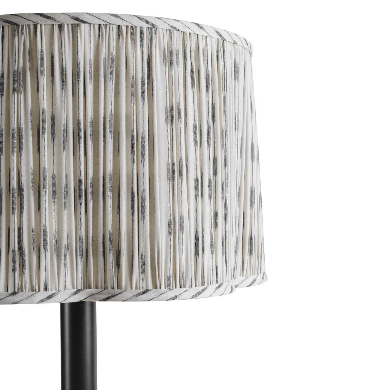 Tall and timeless, the Lexi Floor Lamp brings subtle pattern and sculptural presence to a room. Its pleated grey ikat shade adds soft texture and visual rhythm, while the slender, bamboo-inspired base is crafted from iron and finished in a rich gilded dark bronze. Designed for an E27 bulb (not included), the lamp features a foot switch for ease of use and casts a warm, ambient glow, ideal for living rooms, bedrooms or reading corners. Pair with the Lexi Table Lamp for a refined and cohesive lighting scheme. Lamp Dimensions: W46 Ă— D46 Ă— H171 cm. Shade Dimensions: 46 Ă— 51 Ă— 30.5 cm