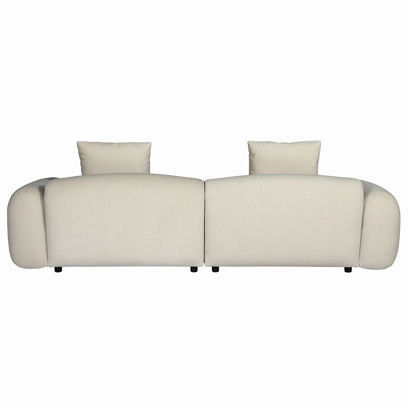Soft-edged and generously scaled, the Limewood Sofa brings sculptural presence to relaxed interiors. Upholstered in a brushed, felted fabric with a refined cream tone, the surface offers a tactile softness that enhances the sofa’s rounded profile. The design reflects the growing influence of curved forms across upholstery, architecture and interior styling, offering comfort with a confident silhouette. Supplied in two parts for ease of delivery and placement, the sofa also includes two matching cushions (50 x 50 cm), ideal for layering tone and texture. Seat height 43.5cm. W255 x D102 x H70 cm