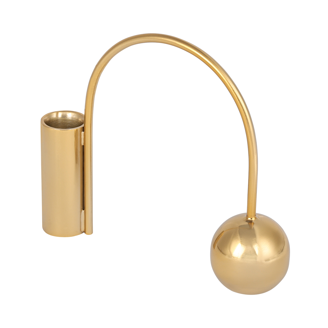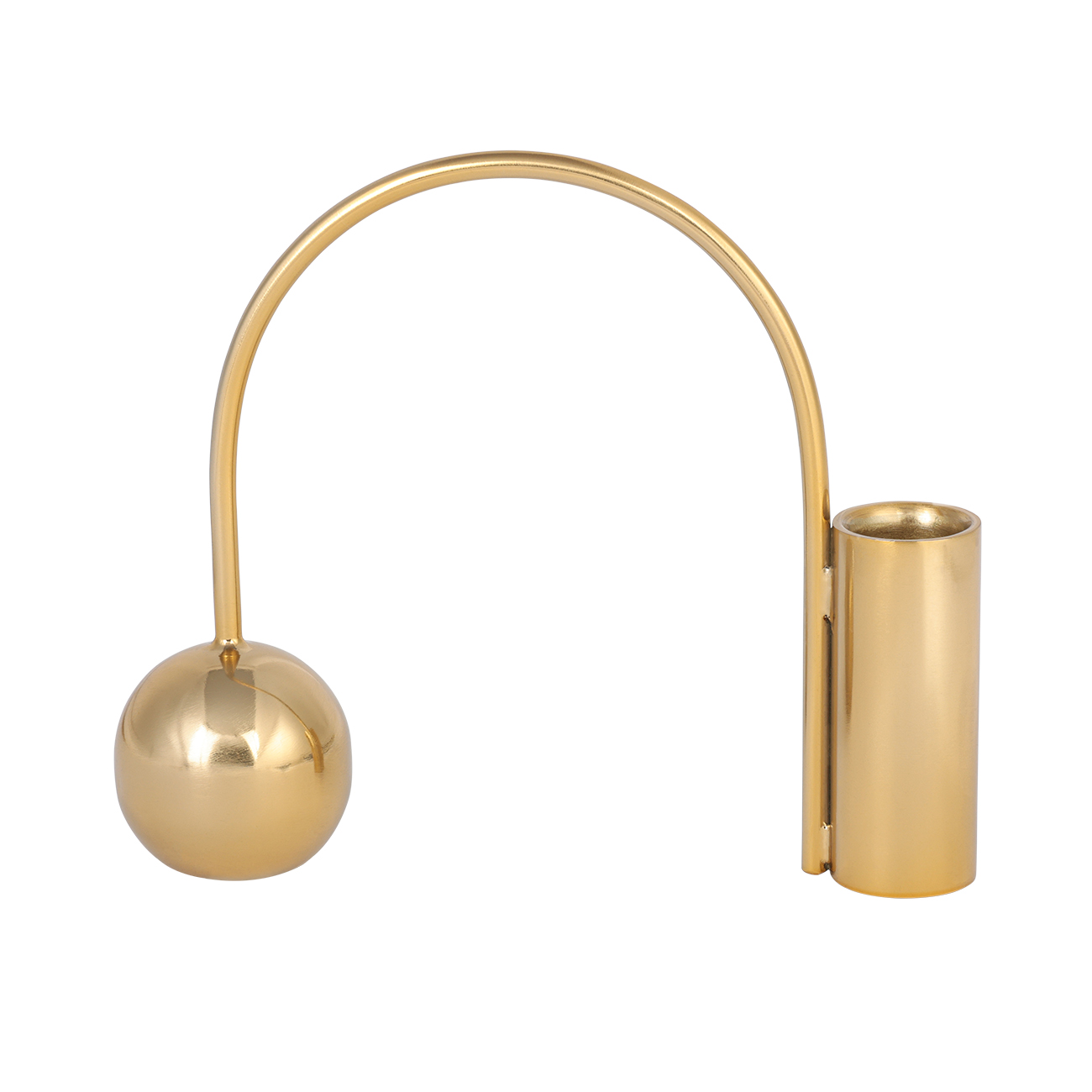 Playful curves meet sleek symmetry. The Luca Arch Taper Candlestick is crafted from welded iron with a polished gold finish, creating a striking silhouette that balances visual weight with airy openness. The offset arch and spherical counterweight add sculptural interest, while the tall candle holder provides height and drama. Pair with other pieces from the Luca range, including the Ring Candlestick and Zigzag Tealight Holder, for a refined yet contemporary candlelight story. For use with taper candles. W18 x D5 x H15.5cm.