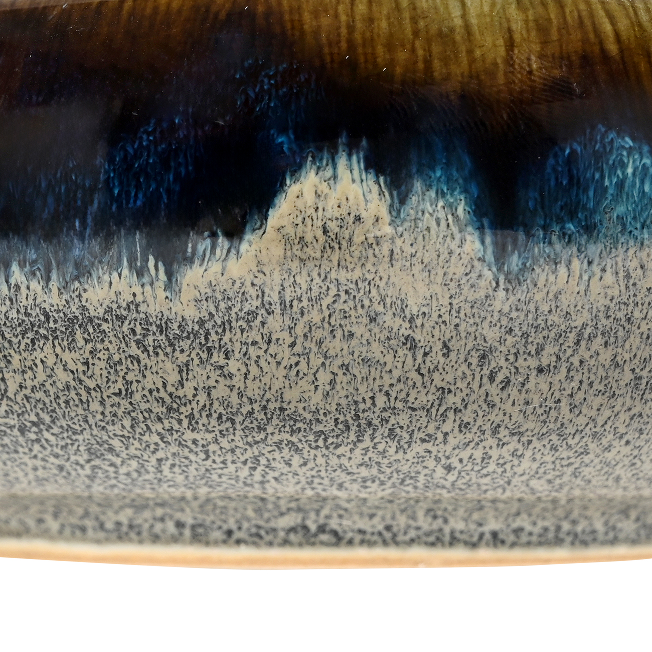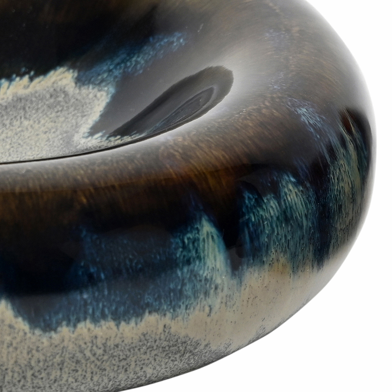 The Medway Reactive Glaze Blue Bowl introduces a sense of quiet drama with its palette of inky blues and smoky greys. Hand-finished in tactile stoneware, each piece features a reactive glaze that forms organic, fluid patterns, making every bowl uniquely expressive. Sculptural in form and grounded in material texture, it makes a considered statement whether styled alone or as part of a curated arrangement. Pair with the matching Medway Glaze Blue Candle for a refined tonal composition, or explore the wider Medway collection in complimentary brown tones. A thoughtfully crafted range designed to balance texture, calm and ceramic artistry throughout the home. Dimensions: W14.2 x D14.2 x H4.7 cm