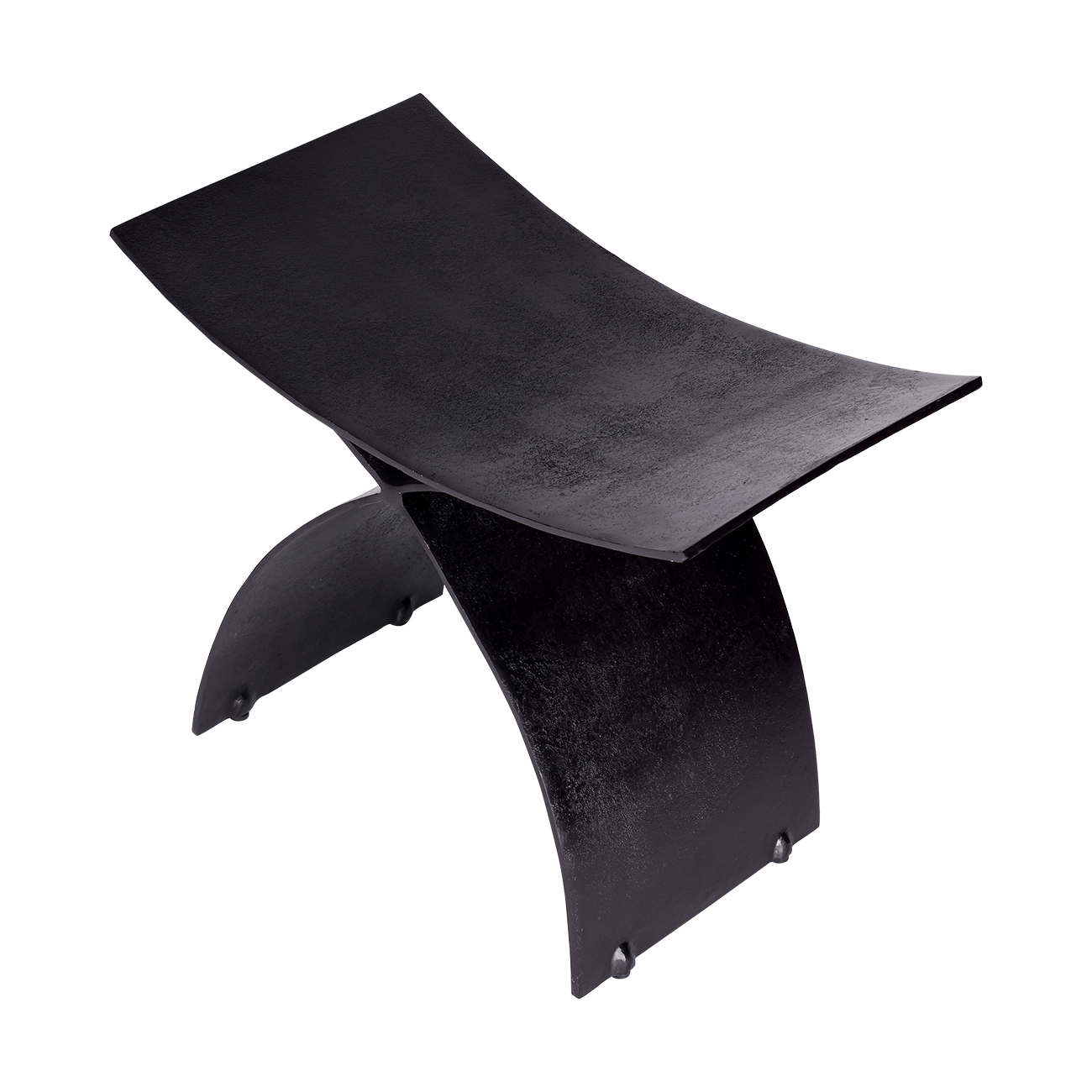 Sculptural and striking, the Noir Crescent Iron Stool brings soft curve architectural character to interior styling. Crafted entirely from cast aluminium, its distinctive arched legs and subtly concave seat echo a sense of balance and movement. The charred black textured surface, adds depth and tactility, enhancing the stool’s sculptural quality. A statement accent for hallways, living spaces or bedrooms, styled solo or with other decorative pieces. Indoor use only. W61 x D35 x H50 cm.