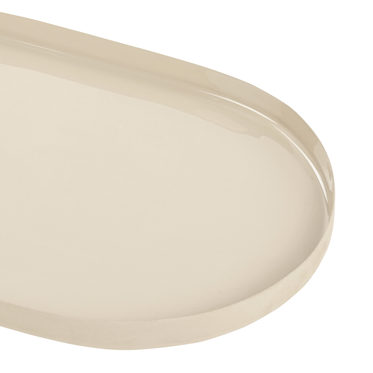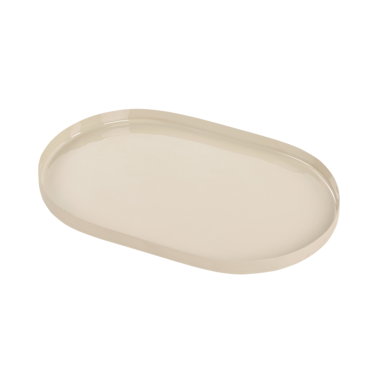 Bring subtle elegance to your styling with the Ovolo Large Tray. Crafted from iron and finished in a smooth, enamelled beige coating, its soft oval form and low-profile edge offer a minimalist and on trend aesthetic with a practical touch. The neutral hue complements both contemporary and classic interiors, making it ideal for corralling objects on coffee tables, consoles or vanities. A functional piece that balances form and utility with effortless ease. Style solo or alongside the matching larger tray and vases for a layered look. W30 x D19.5 x H2 cm.