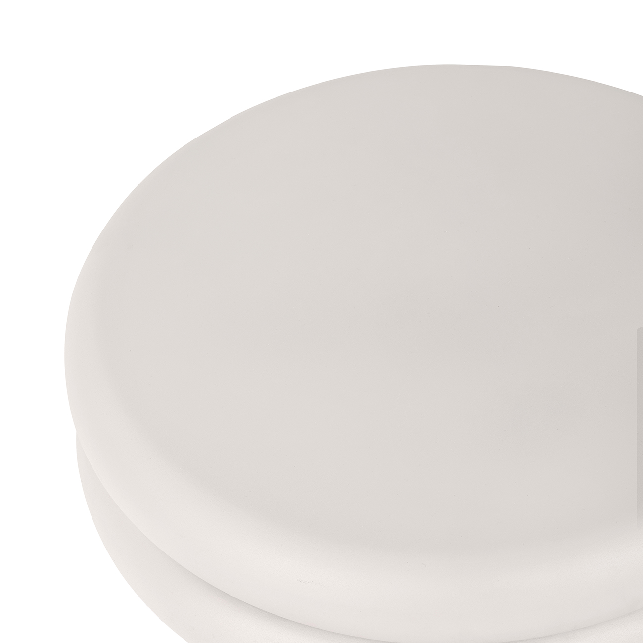 Boldly sculptural with a softened edge, the Palais Coffee Table makes a refined contemporary statement. Crafted from iron and finished in a matte beige tone, its generous circular top is balanced by a chunky base and rounded midsection that recalls modernist architectural motifs. The subtly textured surface adds visual interest and artisanal character. Pair with the matching side table to create a cohesive, design-led living space. Indoor use only. W56 x D56 x H36 cm.