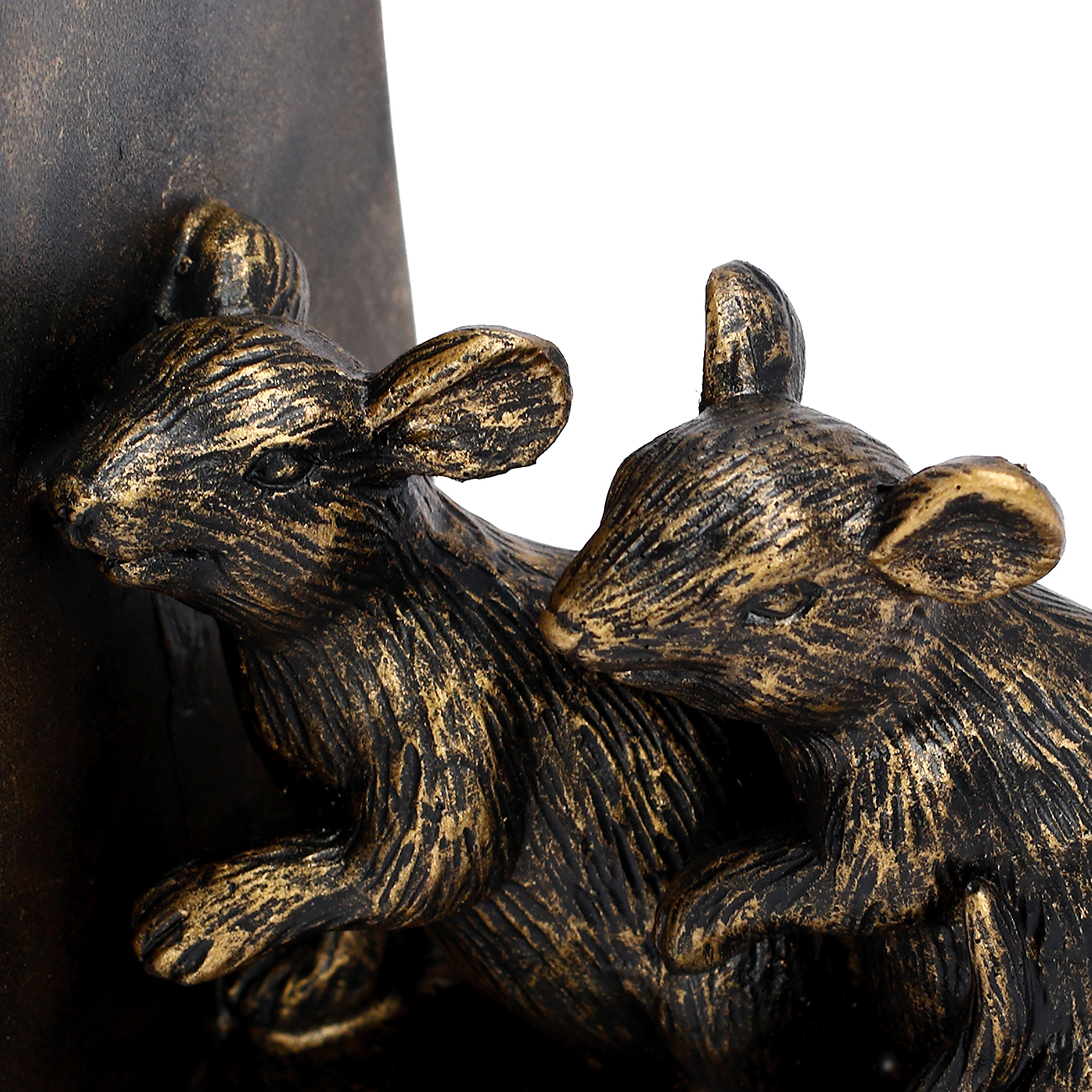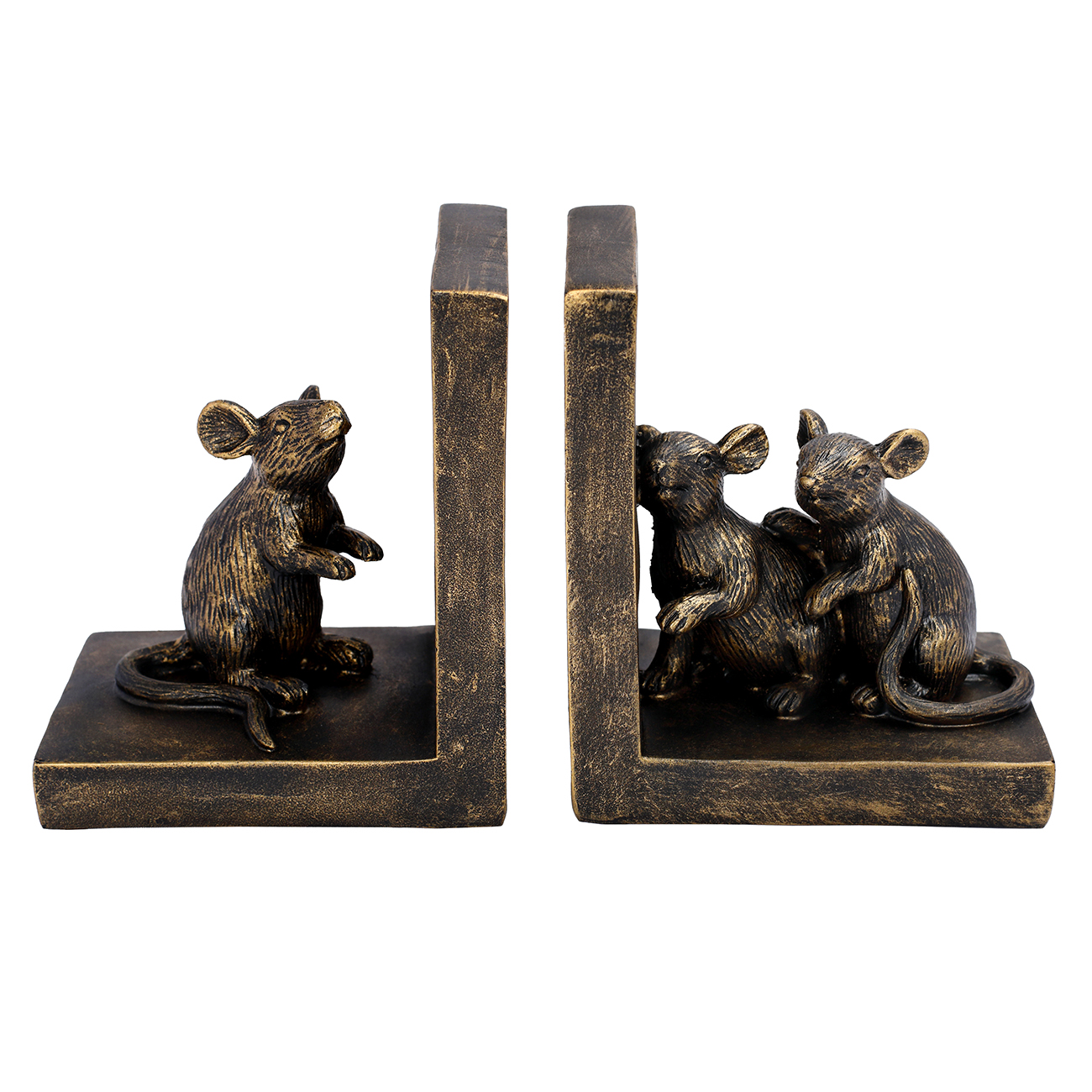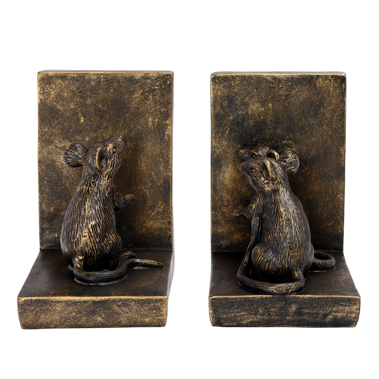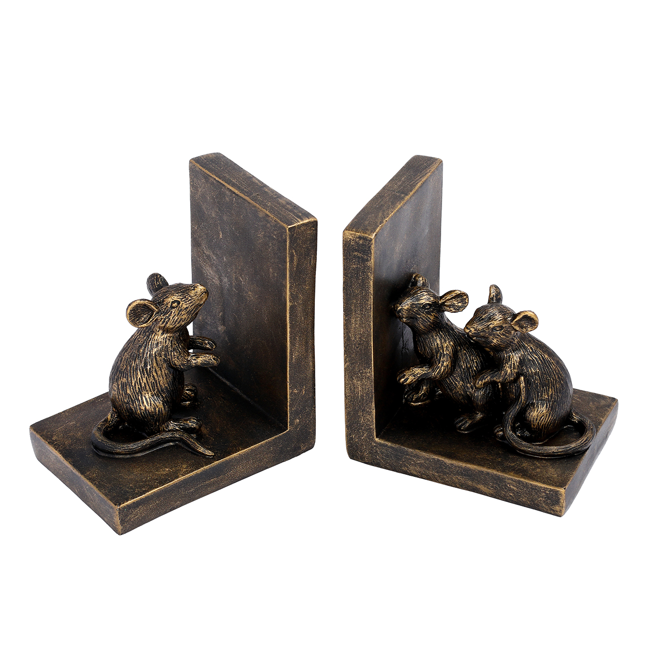 Whimsical yet refined, the Pallino Antiqued Gold Mouse Bookends bring character and charm to bookshelves and reading corners. Cast from a sturdy blend of polyresin and limestone, this duo features three sculpted mice with expressive postures and delicate detailing. Their antiqued gold finish lends a soft, vintage warmth that complements traditional and eclectic interiors alike. Designed to be both decorative and functional, they offer playful support to books and journals while quietly celebrating craftsmanship and storytelling. W26.5 x D9.8 x H15 cm