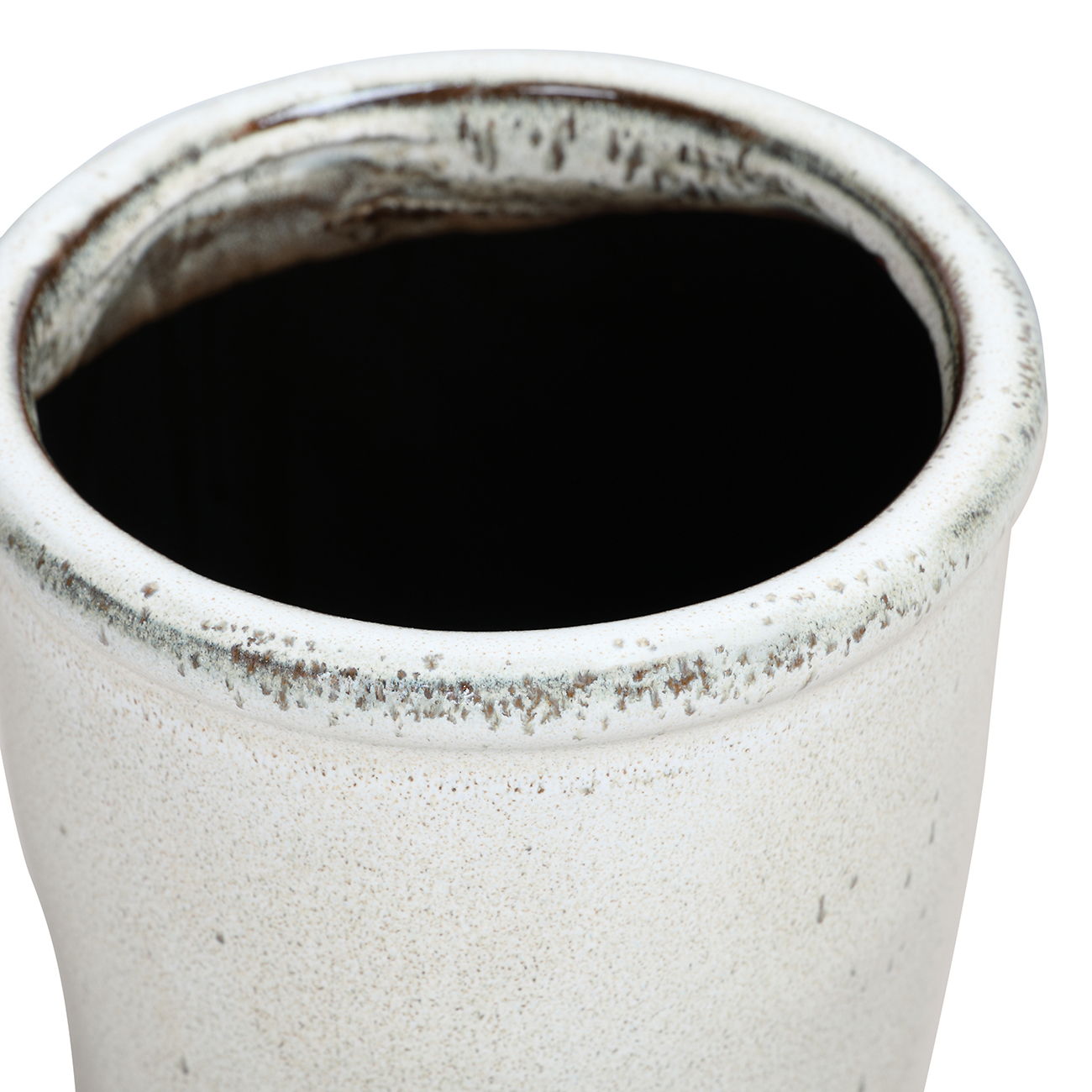 Elegant in its simplicity, the Malmo Glazed Tall Planter brings height and artisanal texture to indoor and outdoor spaces. Hand-crafted in ceramic, its elongated silhouette is finished with a gently mottled glaze in calming neutrals, subtly deepened by a darker glazed rim for visual contrast. Designed without drainage holes, it is ideal for use with pre-potted plants or as a decorative vessel. Pair it with the coordinating Malmo Glazed Planter (H22.5 cm) to build a layered and harmonious display. Dimensions: W18 x D18 x H33 cm