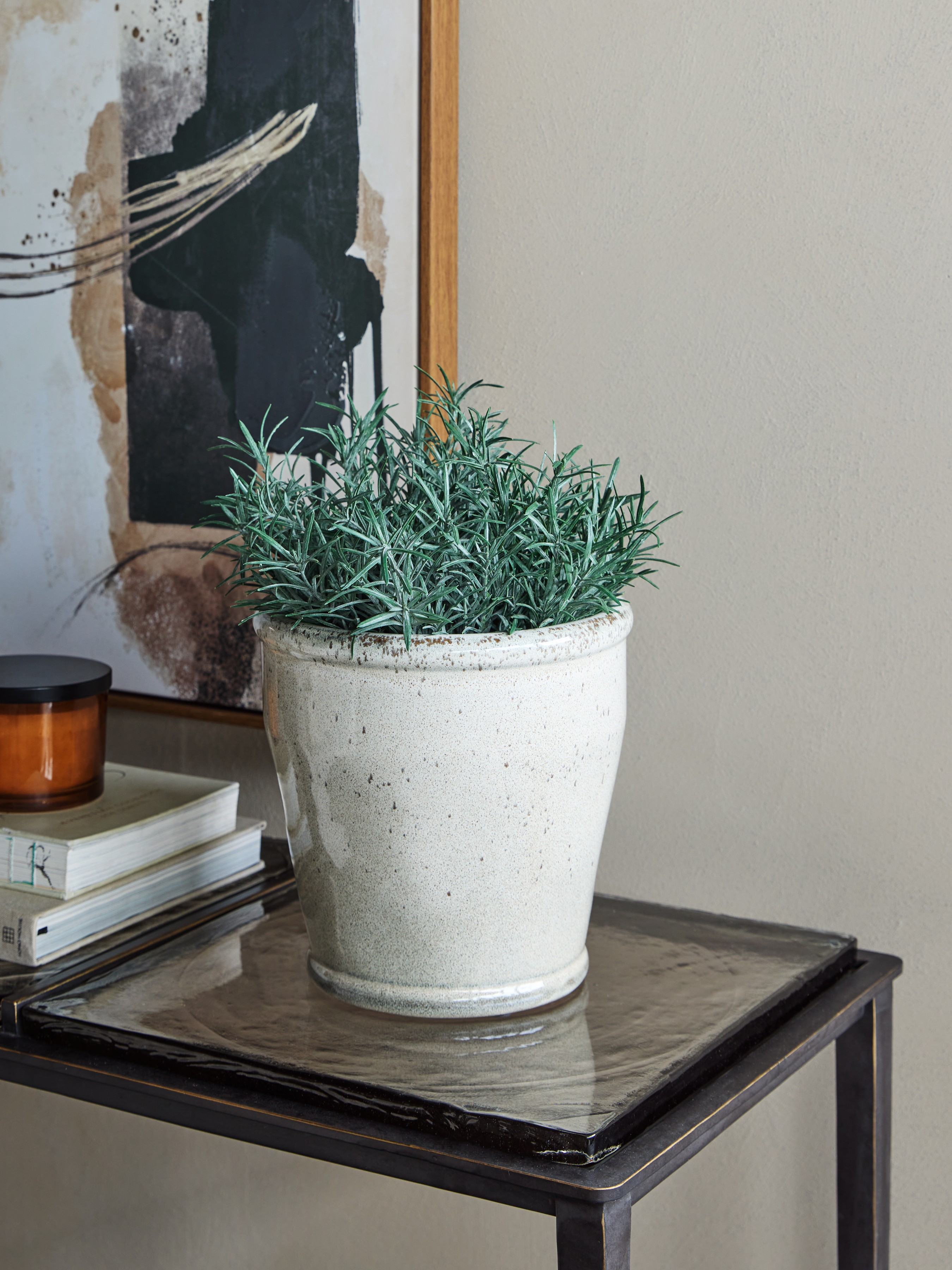 Understated yet full of character, the Malmo Glazed Planter offers a timeless blend of form and natural tone. Crafted by hand, its rounded shape is finished with a reactive speckled glaze and completed with a deeper rim detail for added contrast. Designed without drainage holes, it is water-safe and suitable for both indoor and outdoor use, perfect for housing potted greenery or standing alone as a sculptural accent. Style with the Malmo Glazed Tall Planter for a balanced arrangement of shape and height. Dimensions: W22.5 x D22.5 x H22.5 cm