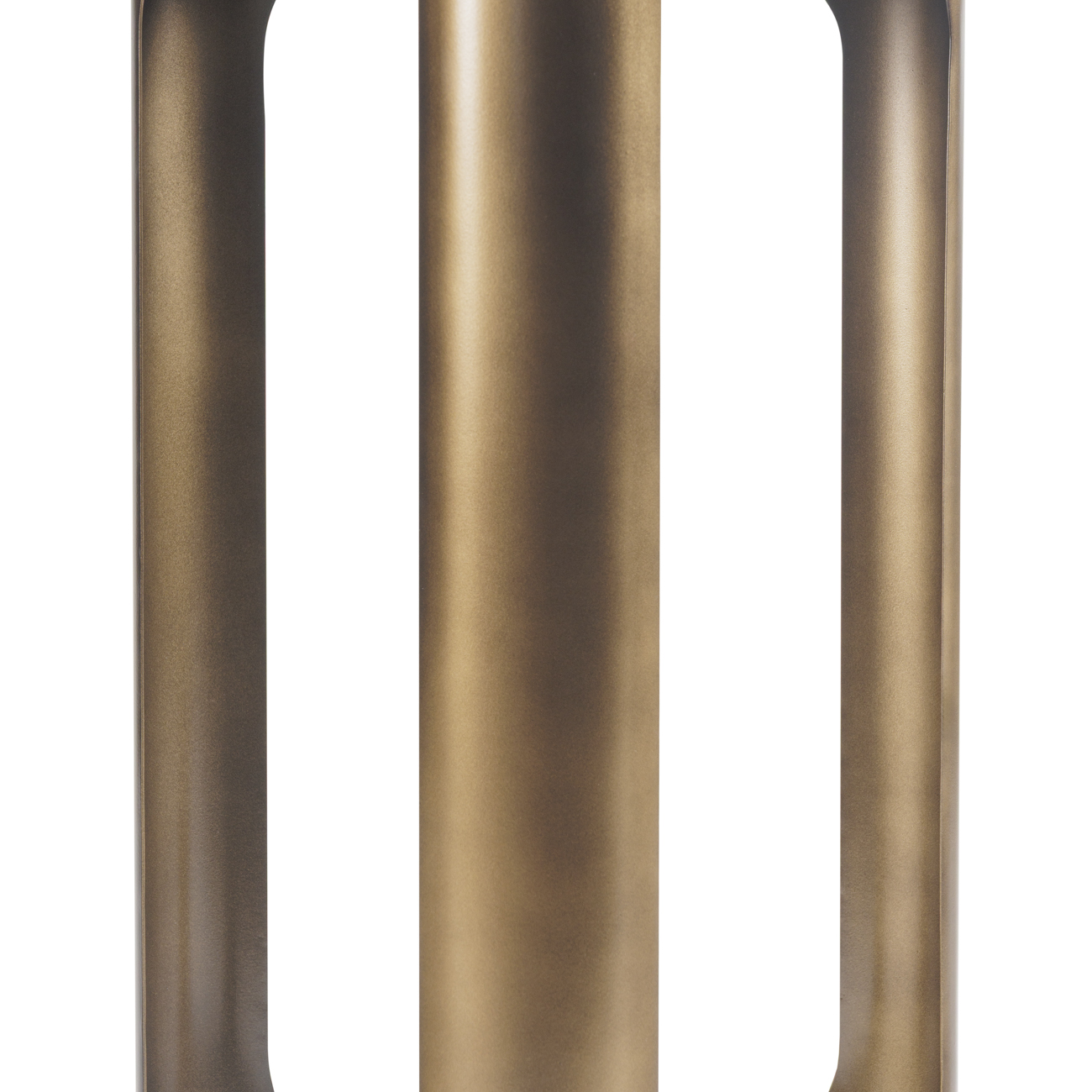 The Thorpe Triangular Accent Table in Black Tinted Glass brings a contemporary edge to any interior. Its distinctive triangular shape is crafted from smoke gold-finished iron, creating a warm contrast to the smooth black-tinted glass top. The open-frame design adds a sense of lightness, making it ideal as a statement side table or for layering with other furniture. Explore the wider Thorpe collection for complementary tables, shelving and decorative accessories in the same refined metal and glass design. Dimensions: W31 Ă— D34 Ă— H60 cm.
