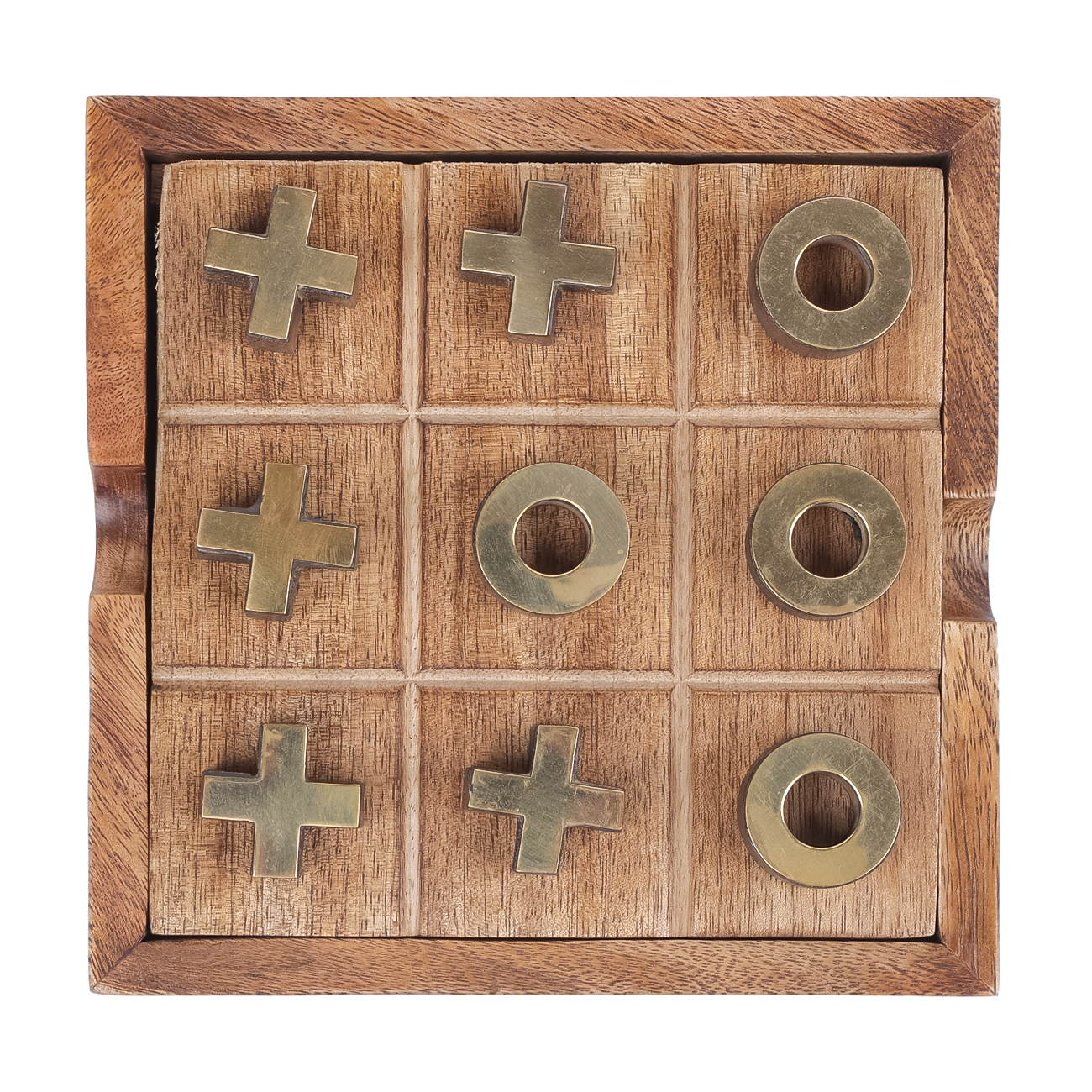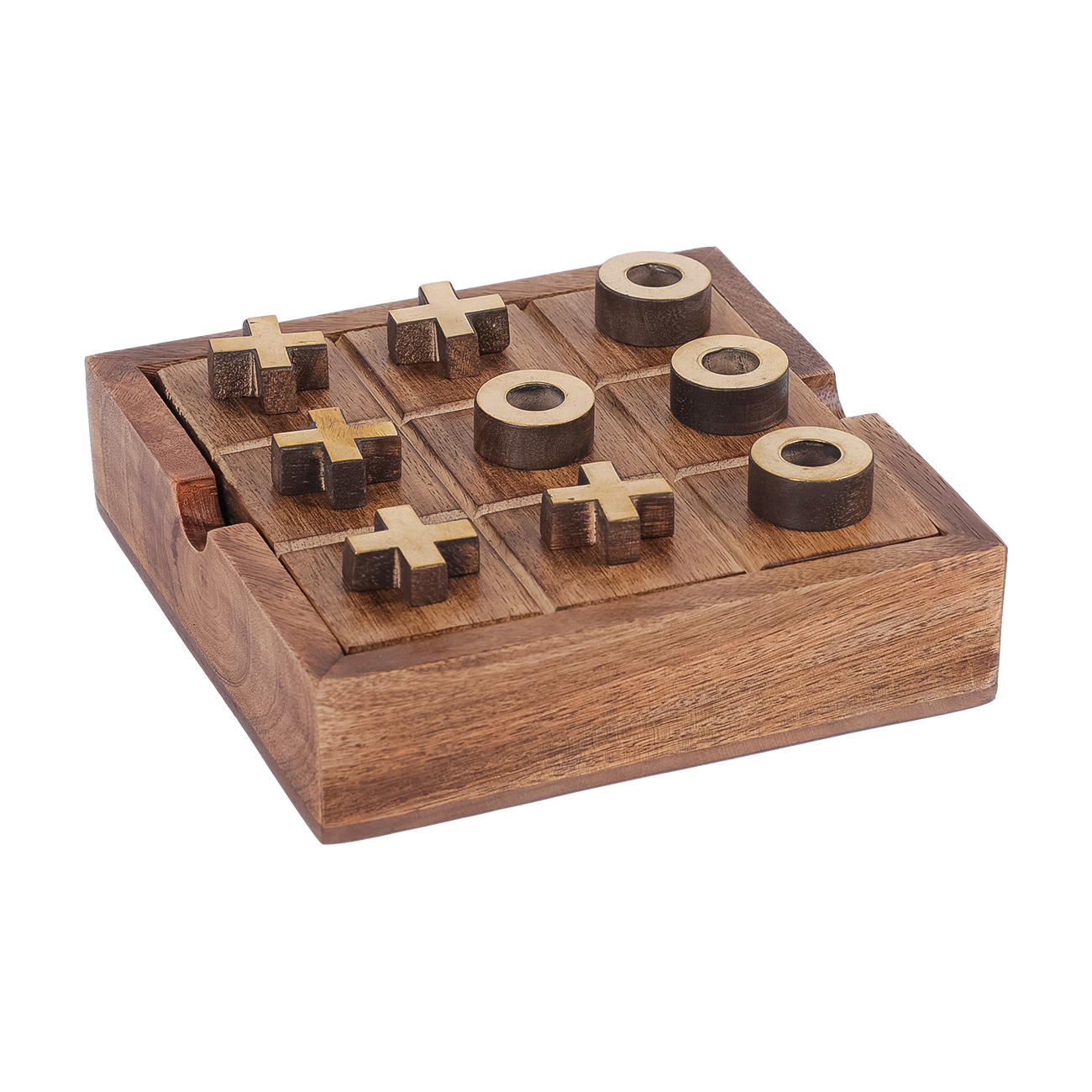 Pryce Mango Wood Noughts and Crosses & Solitaire Game