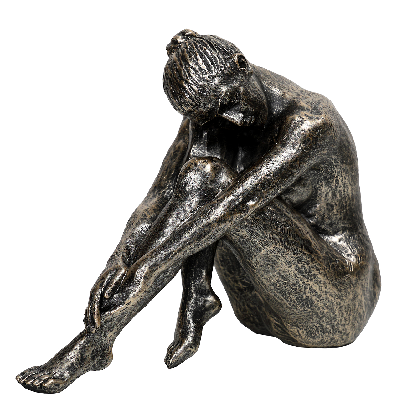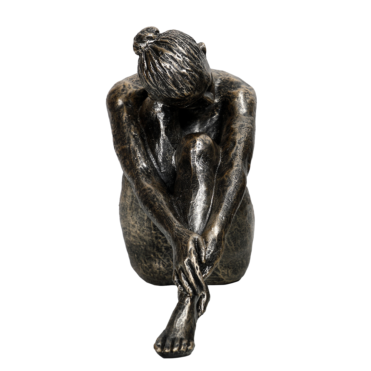 Expressive in its stillness, the Relaxed Female Sculpture offers a sculptural study in poise and introspection. Crafted from a composite of polyresin and limestone with a subtle bronze patina, the figure’s posture and surface detailing bring depth and texture to any interior setting. Whether placed alone or among curated objects, it speaks to calm and presence. A male version is also available, sharing the same refined material character. W17 x D9 x H14cm.