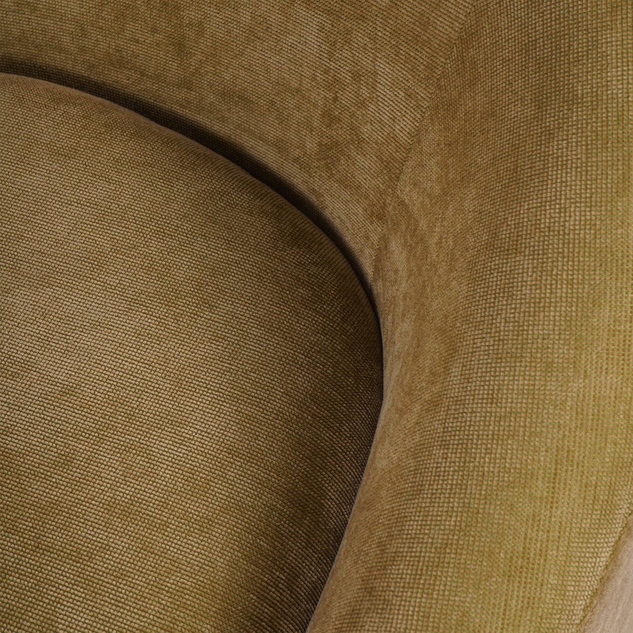 With its sculptural form and cocooning silhouette, the Rowley Chair makes a distinctive statement in any living space. Upholstered in tactile olive chenille, its curved lines and wrap-around shape offer a sense of modern elegance, while the generously padded seat invites lingering comfort. Compact yet characterful, Rowley is the perfect accent chair for bedrooms, reading corners or layered lounge settings in need of a soft, stylish touch. Also available in a warm Blush colourway. 76x75x71cm.