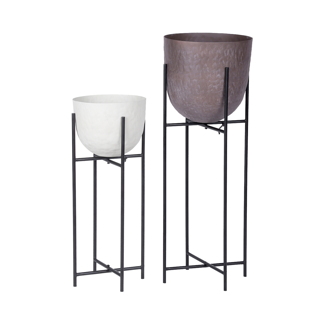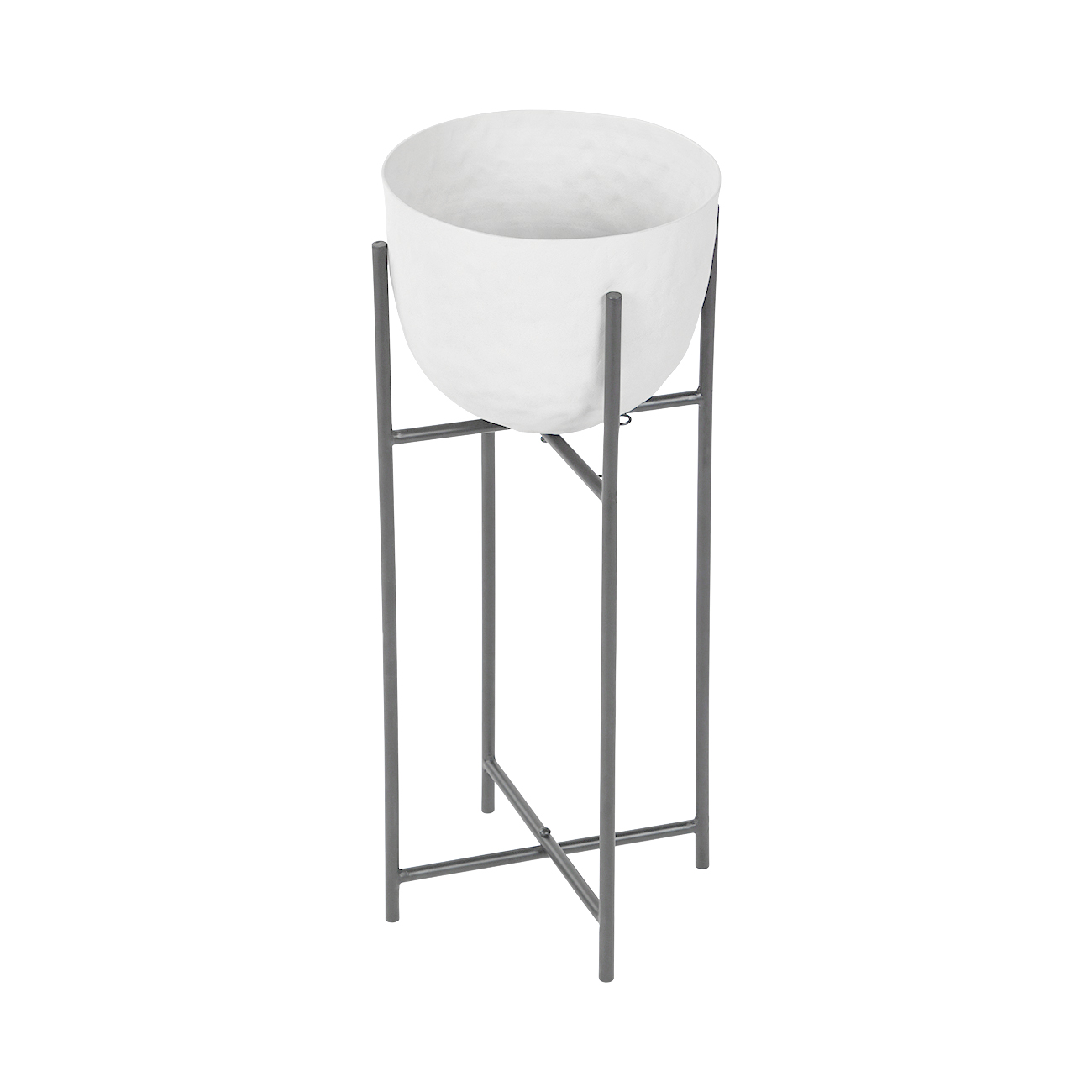 Clean lines meet tactile texture. The White Samui Planter pairs a soft curve planter with a tall, simple iron stand, creating height and interest in any space. Crafted in aluminium with a hand-applied white stonewash finish, its subtly organic surface offers tactile detail and the perfect place to display a favourite plant. Second size also available. Designed for indoor use only and should be used with a protective planter insert. Explore the full Samui range to discover coordinating planters, bowls and vases. W21 x D21 x H55cm.