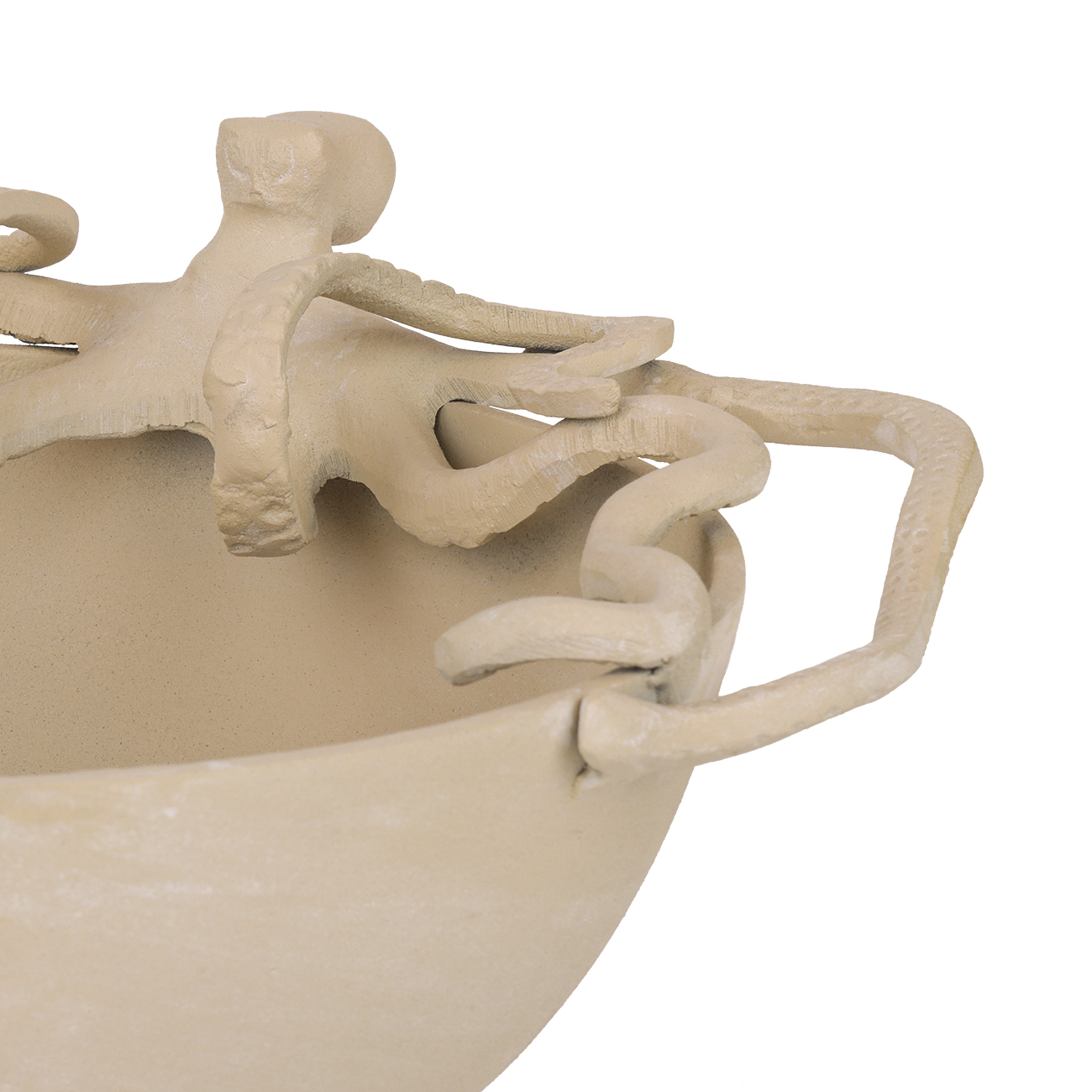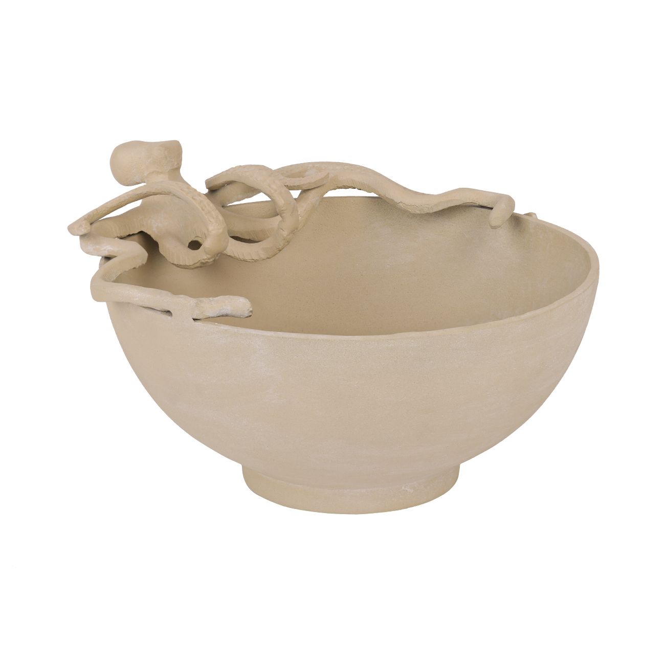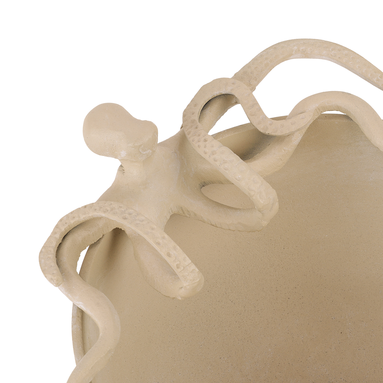 Sculptural and striking, the Seaside Octopus Bowl blends coastal influence with bold form. Crafted from iron with a hand-applied beige stonewash finish, this statement piece features a tactile octopus whose intricately detailed tentacles curl playfully across the rim. The deep, rounded bowl introduces visual texture and artisanal character to any surface, serving as a distinctive focal point. Pair with the Starfish Shallow Bowl and the Starfish Small Deep Bowl to complete the Seaside collection. Not food or water safe. W29 x D29 x H17cm