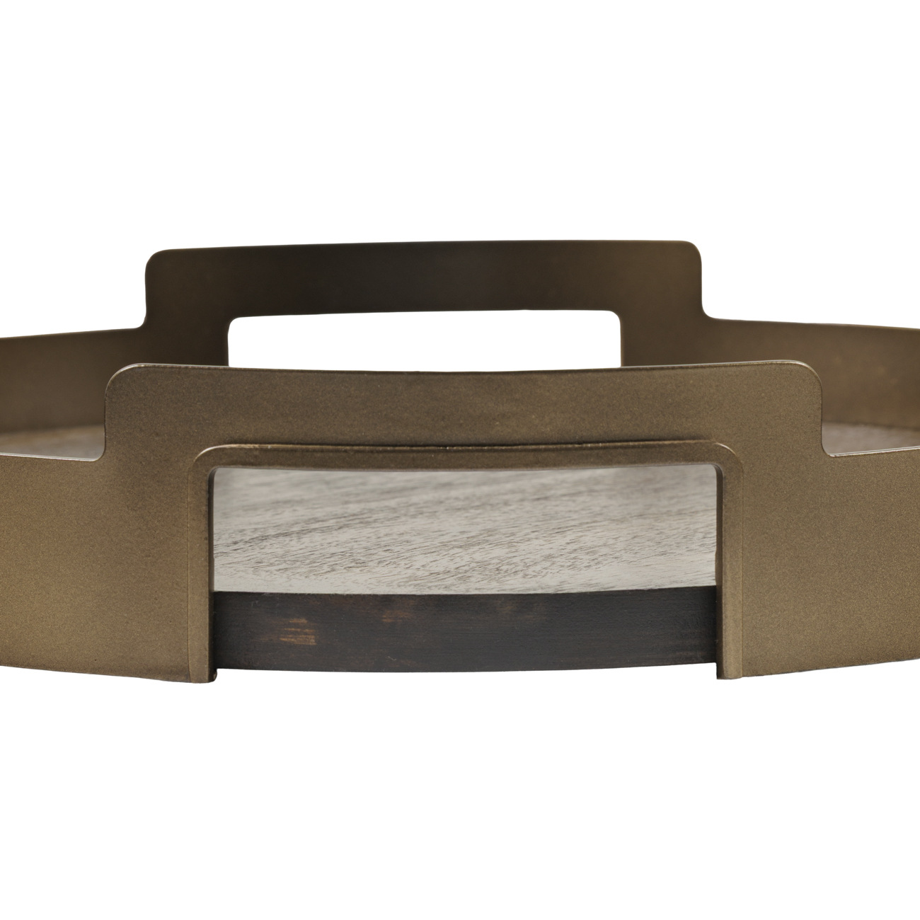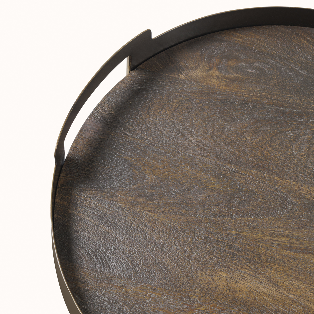 Crafted for both utility and quiet sophistication, the Shibui Trays bring warmth and structure to tabletop styling. Each piece pairs a sandblasted mango wood base with a smoke gold iron surround, shaped with integrated handles for easy movement. Hand-distressed for a subtle depth of finish, these trays suit both serving and display. Whether holding glassware, candles or collected objects, they add grounded elegance to any surface. (L) W39.5 x D38.5 x H6.5cm, (S) W34.5 x D33.5 x H6.5cm