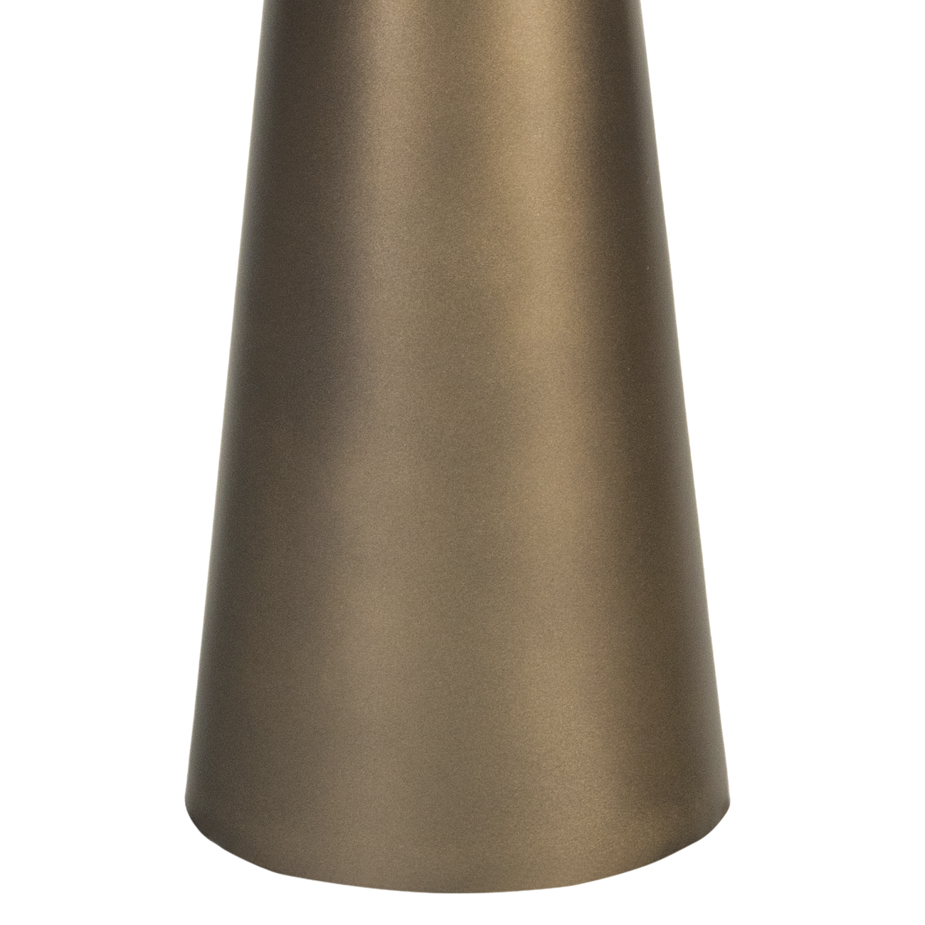 With its tall profile and refined proportions, the Southbourne Floor Hurricane makes a bold yet understated statement. A smoke gold tapered base supports a large hand blown glass vessel in a copper brown lustre with delicate hammering for a softened luxurious texture. Suitable for pillar candles or tea lights of a dia of 7cm. This larger scale piece brings elegance to hearths and floor spaces. Style with the coordinating small and medium Southbourne Hurricanes and the Southbourne Lamps to create height and harmony across the range. W17 x D17 x H80cm.