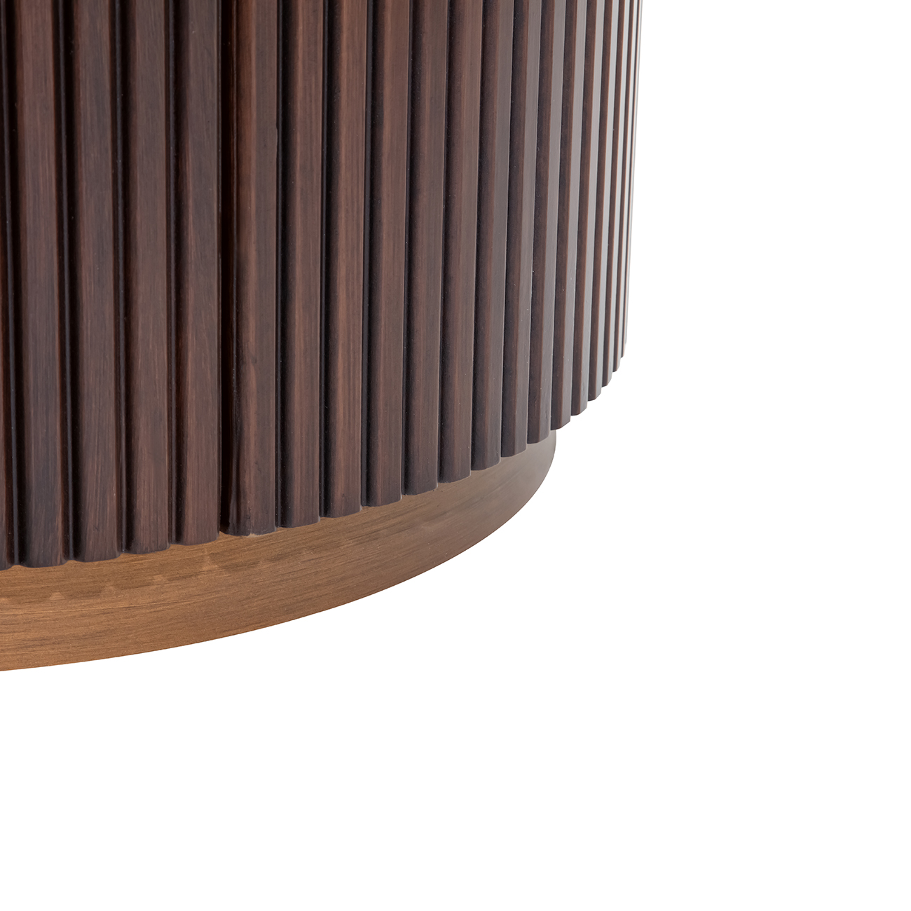 A compact yet sculptural piece, the Whitwell Single Bedside balances rich materials with a quietly bold profile. The pebble grey marble top offers a softly honed surface, with each one displaying natural tonal and veining variation. Crafted from solid rubberwood for strength and finished in deep walnut, the curved fluted frame conceals three generous drawers with antique brass handles. A matching antique brass base adds subtle lift and warmth. This is a functional storage piece with refined character. Explore the full Whitwell collection, including a Coffee Table, Two Door Cabinet, Dining Table, Three Drawer Chest, Desk and Console Table. W66 x D53 x H64 cm. Drawer size W38.5 x D39 x H12cm.